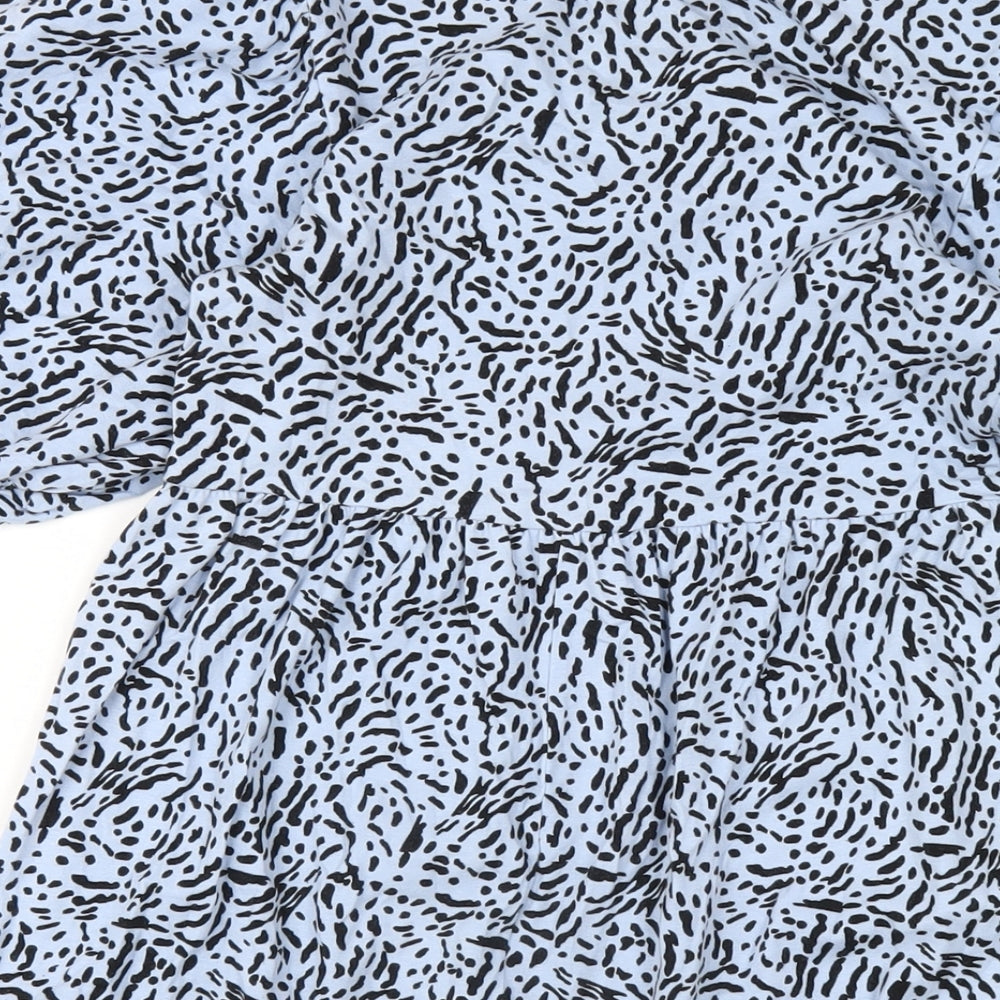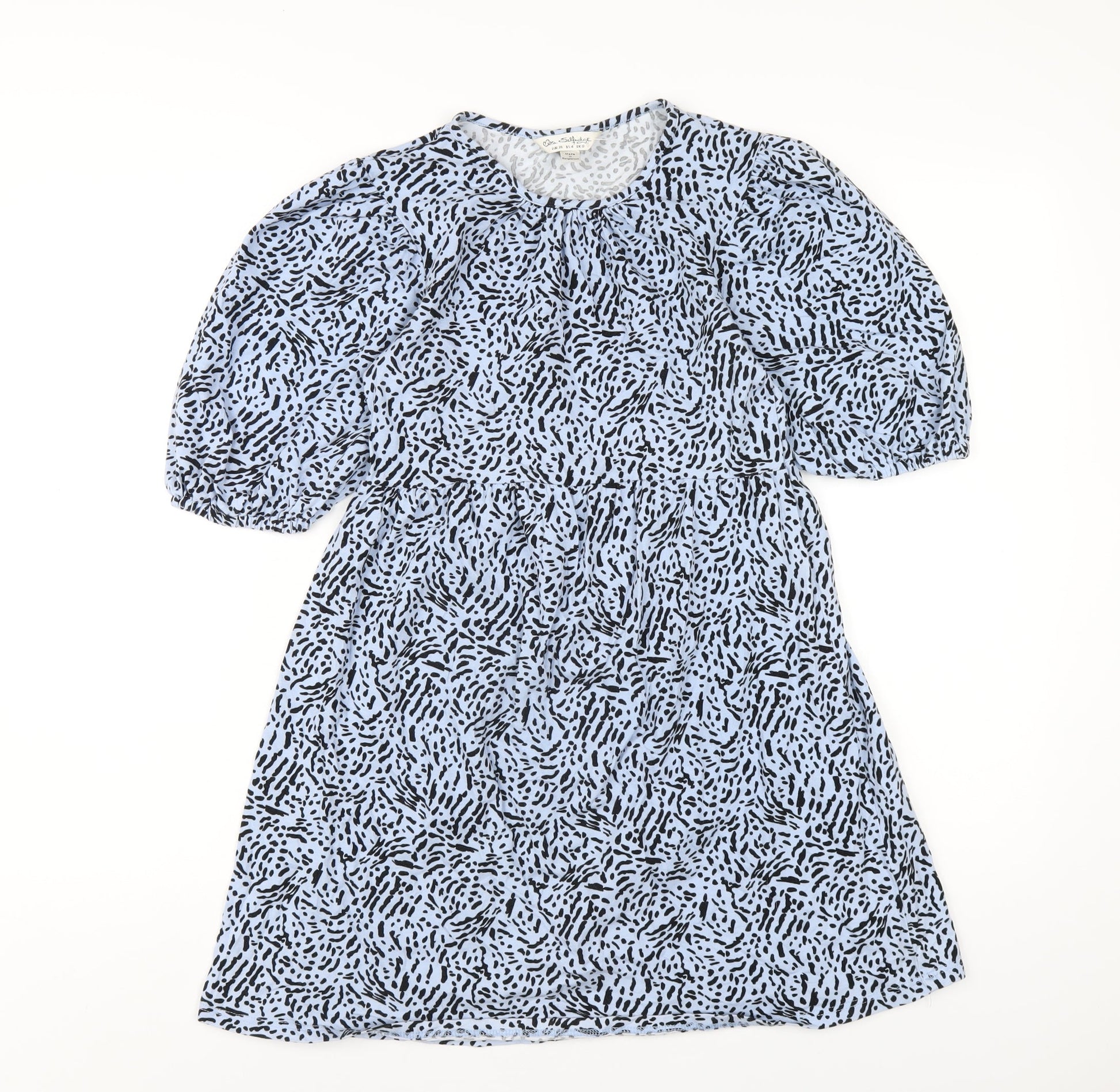 Miss Selfridge Womens Blue Geometric Cotton A-Line Size 8 Round Neck Pullover