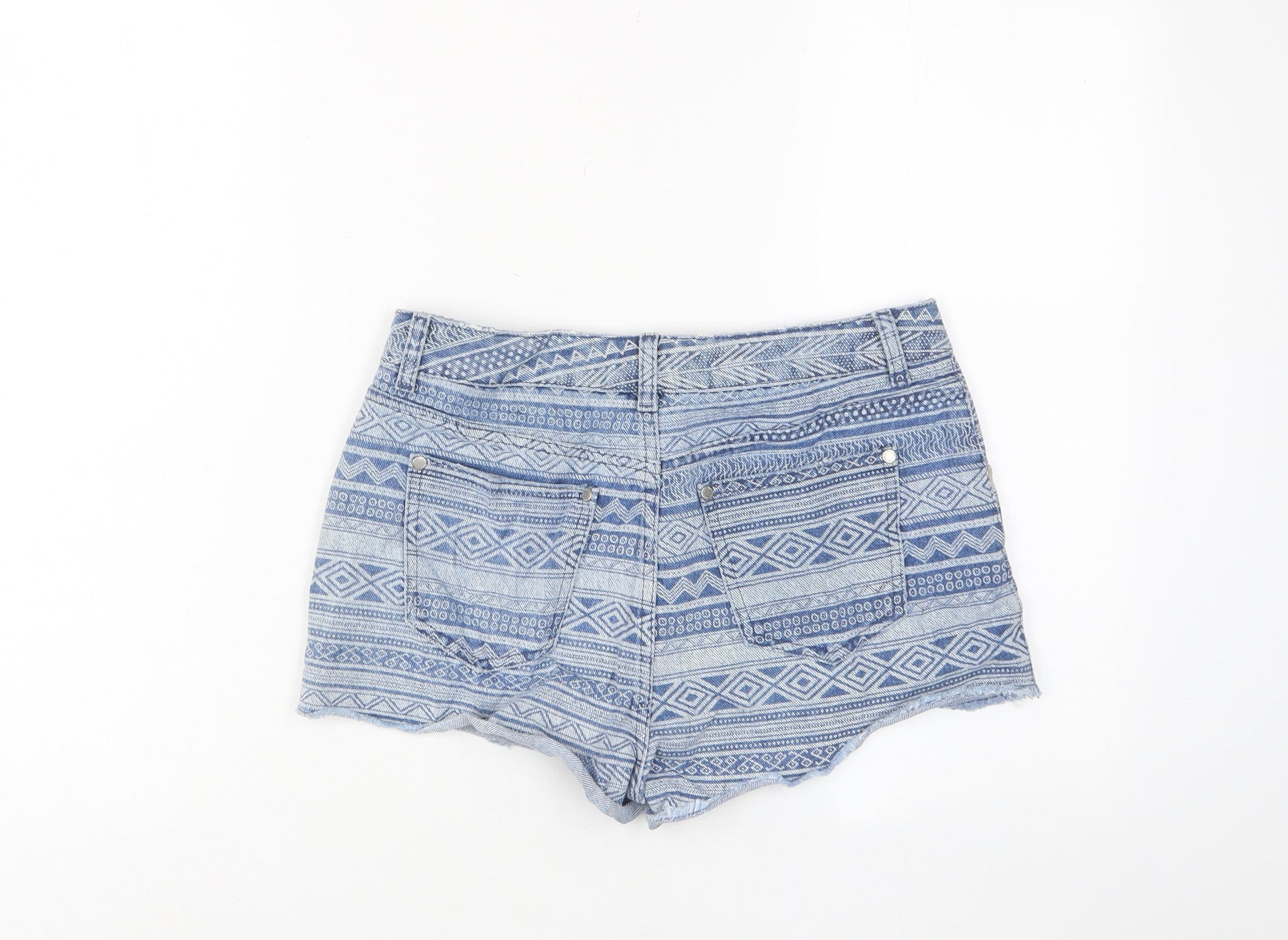 Miss Selfridge Womens Blue Geometric Cotton Basic Shorts Size 10 Regular Zip - Pockets