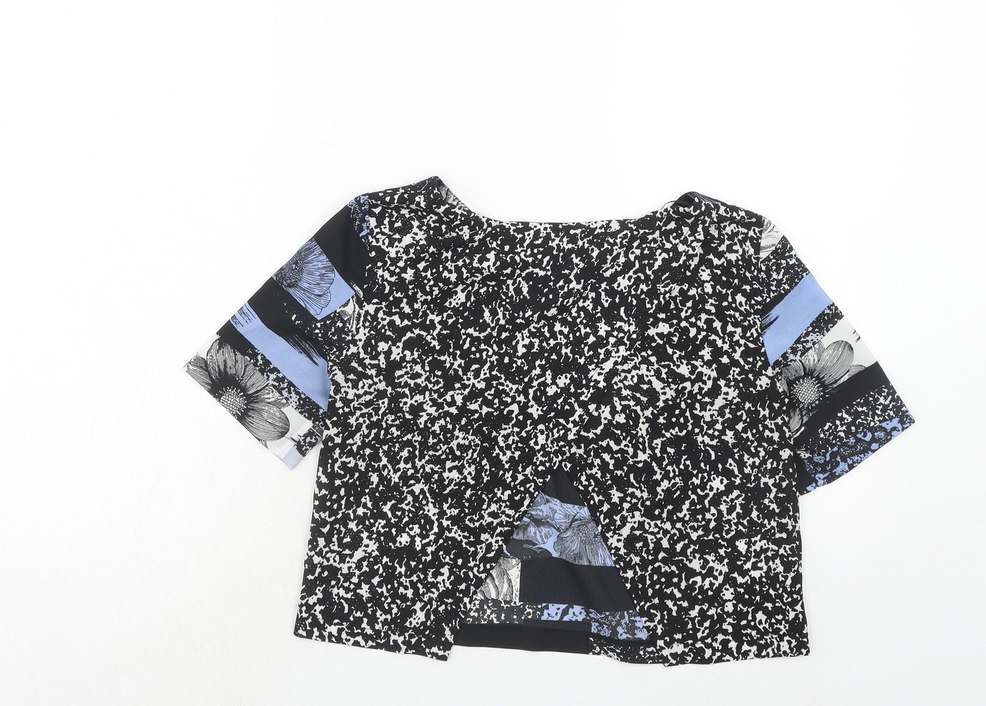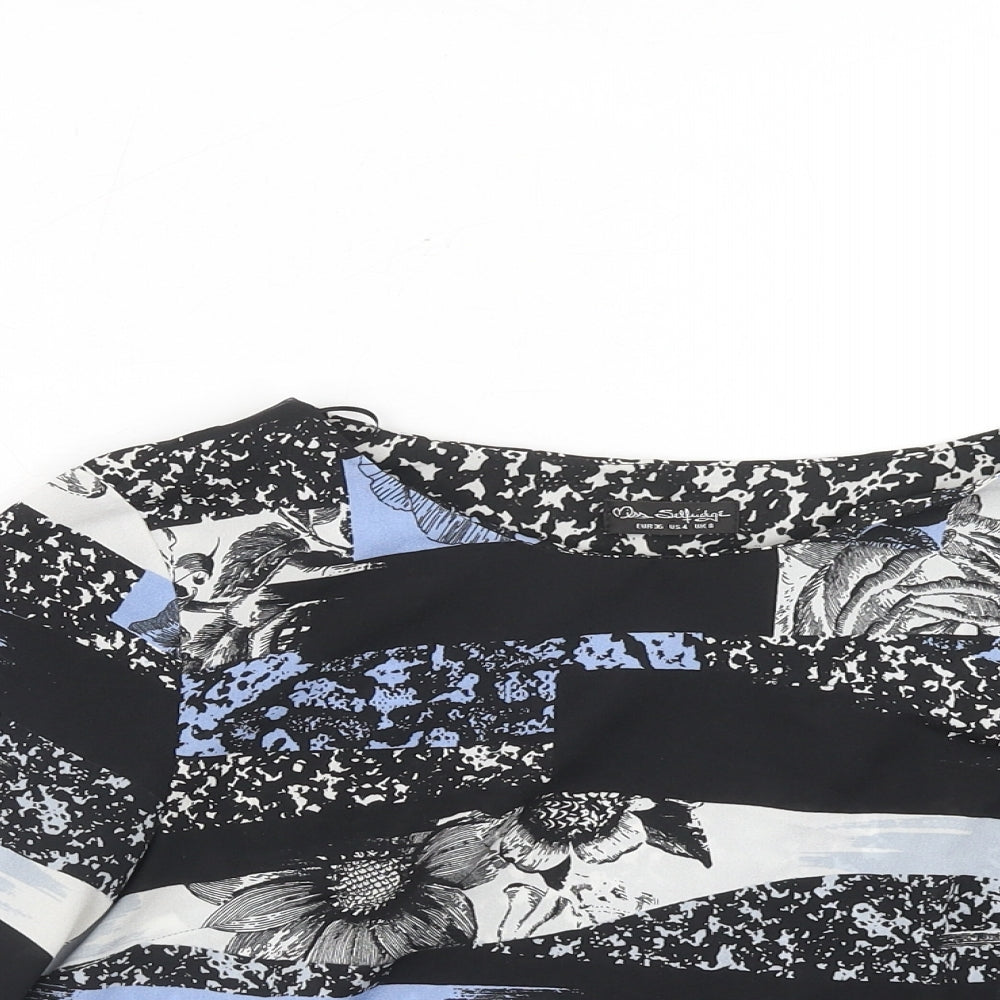 Miss Selfridge Womens Blue Geometric Polyester Basic Blouse Size 8 Round Neck
