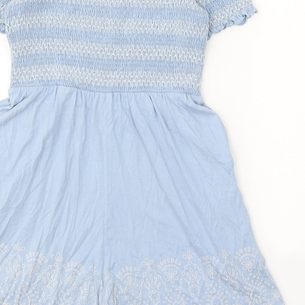 Miss Selfridge Womens Blue Geometric Polyester Playsuit One-Piece Size 10 Pullover - Shirred Bardot