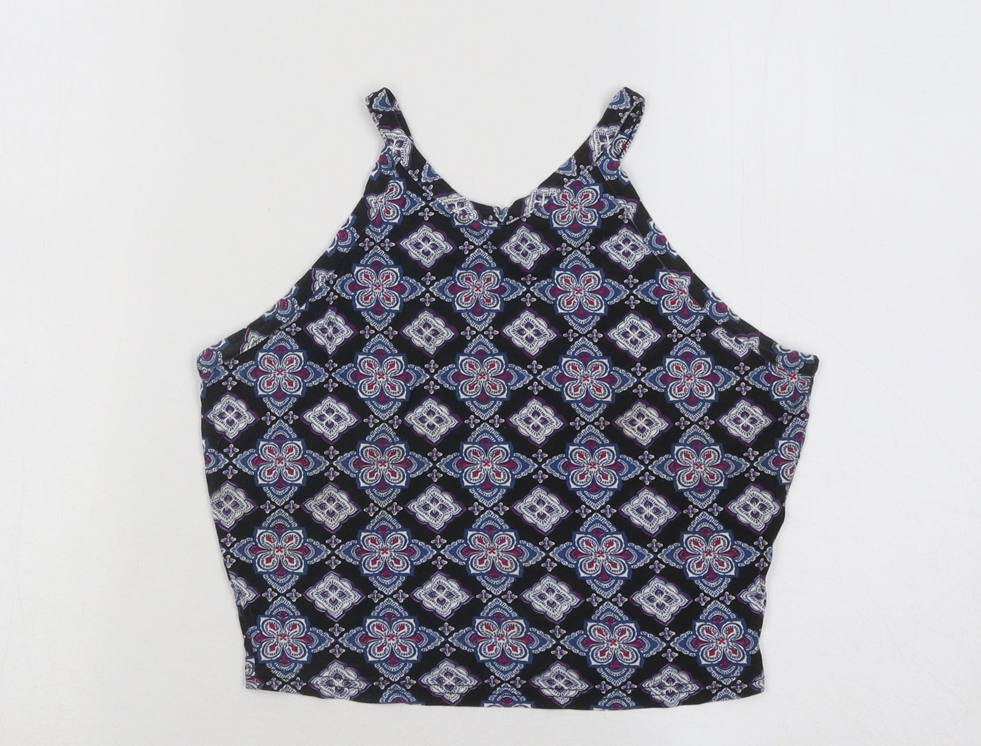Miss Selfridge Womens Blue Geometric Viscose Basic Tank Size 8 Round Neck