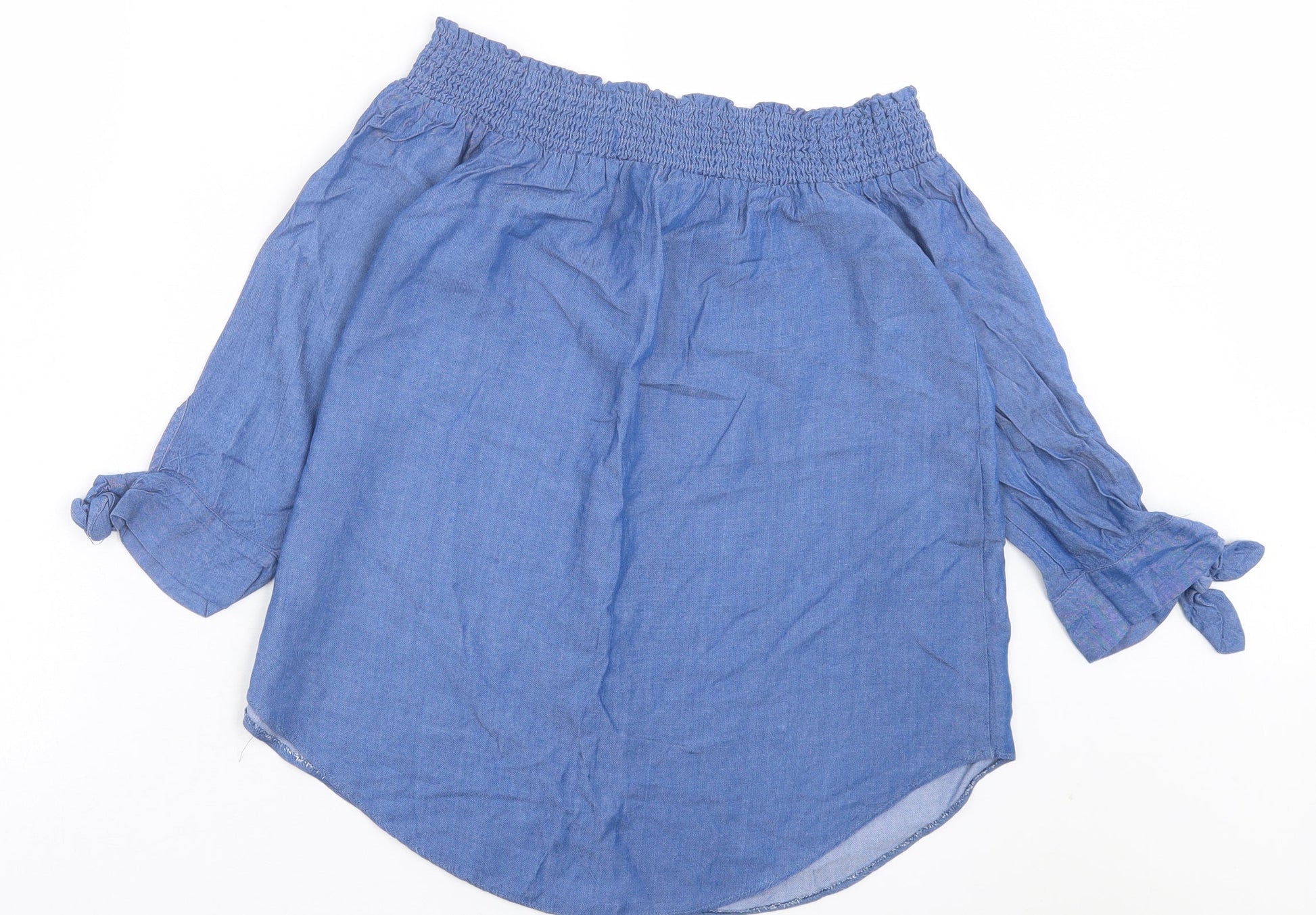 Miss Selfridge Womens Blue Lyocell Basic Blouse Size 12 Boat Neck