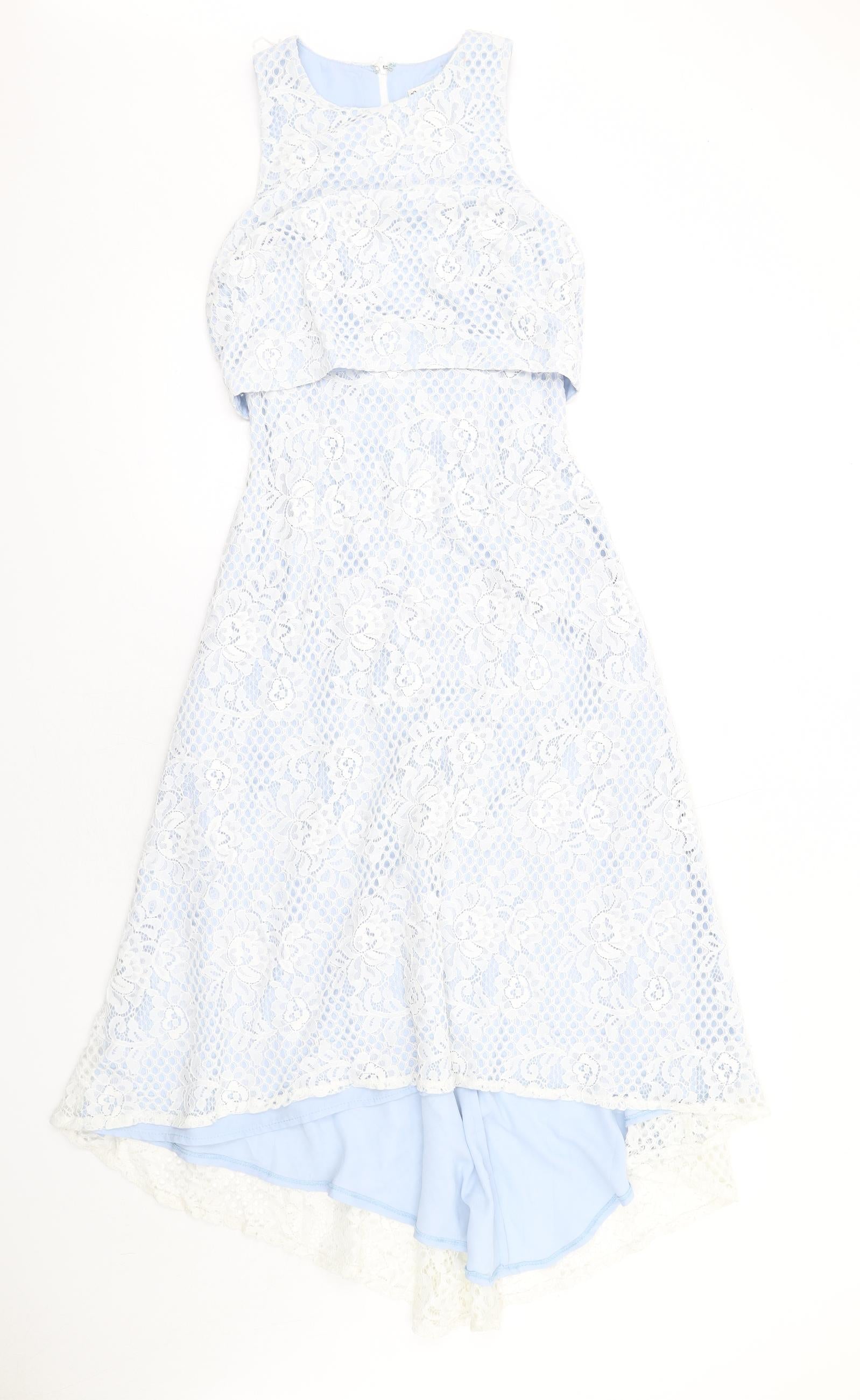 Miss Selfridge Womens Blue Nylon A-Line Size 6 Round Neck Zip