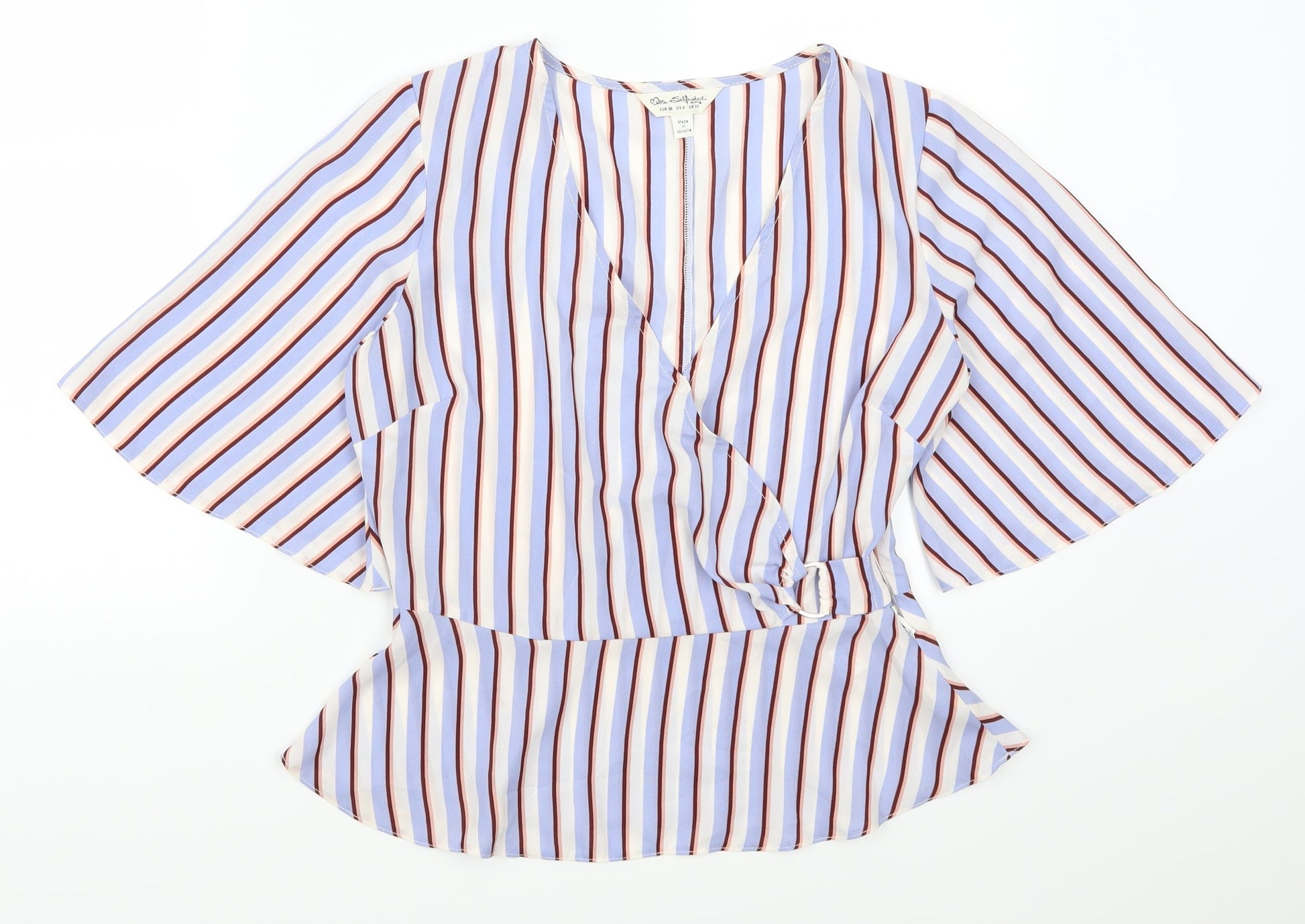 Miss Selfridge Womens Blue Striped Basic Blouse Size 10