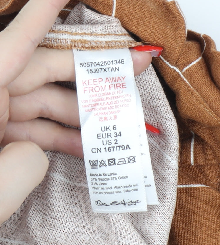Miss Selfridge Women's Brown Striped Paperbag Shorts