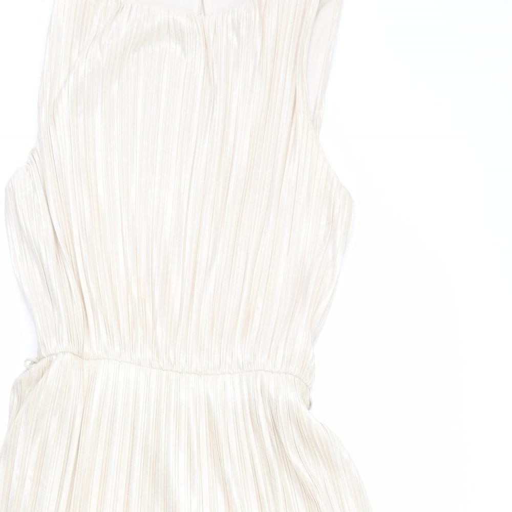 Miss Selfridge Womens Gold Polyester A-Line Size 12 Round Neck Button - Sparkle, Pleated