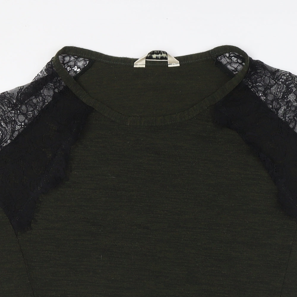Miss Selfridge Womens Gold Polyester Basic Blouse Size 10 Boat Neck - Lace