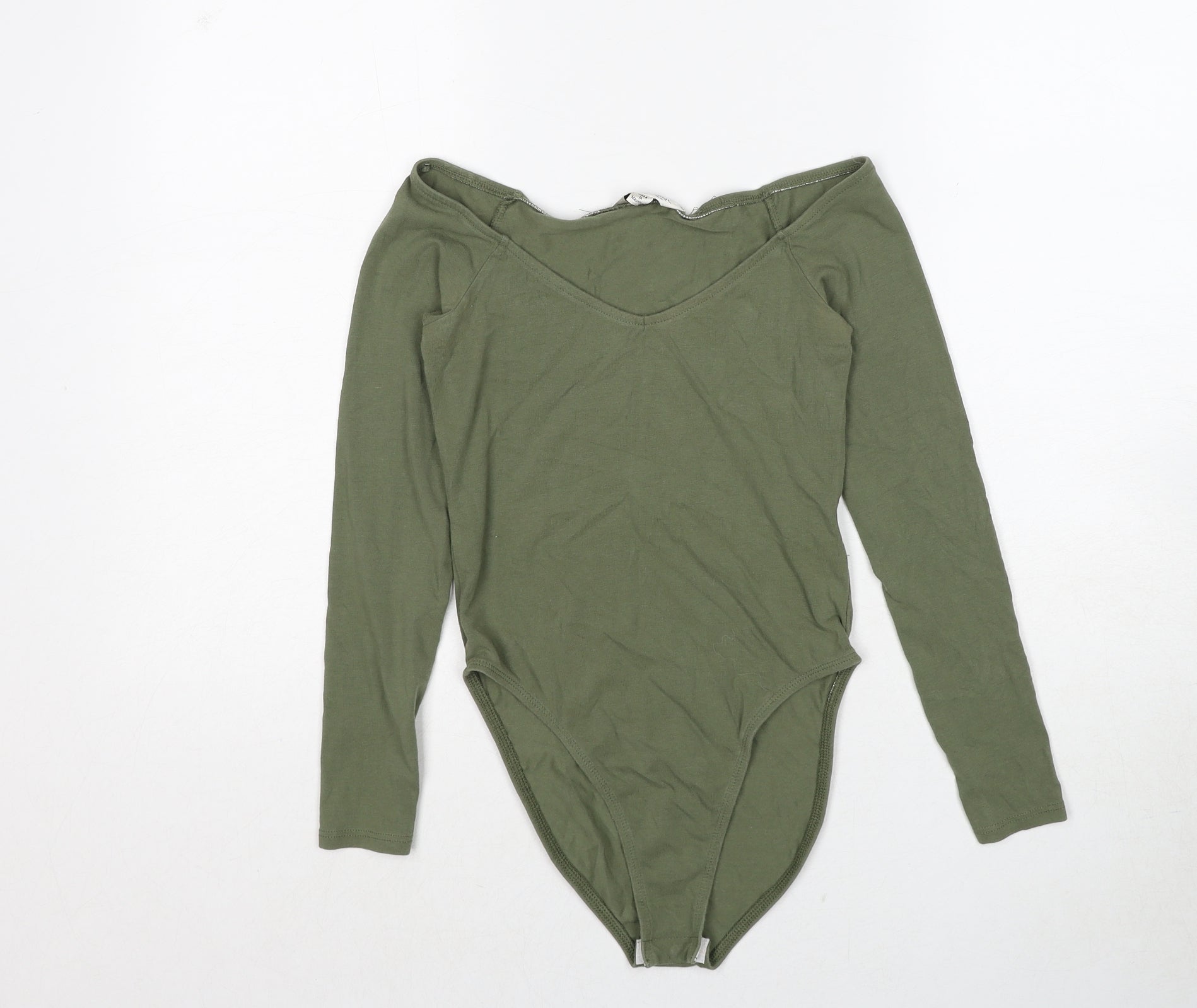 Miss Selfridge Womens Green Cotton Bodysuit One-Piece Size 6 Snap