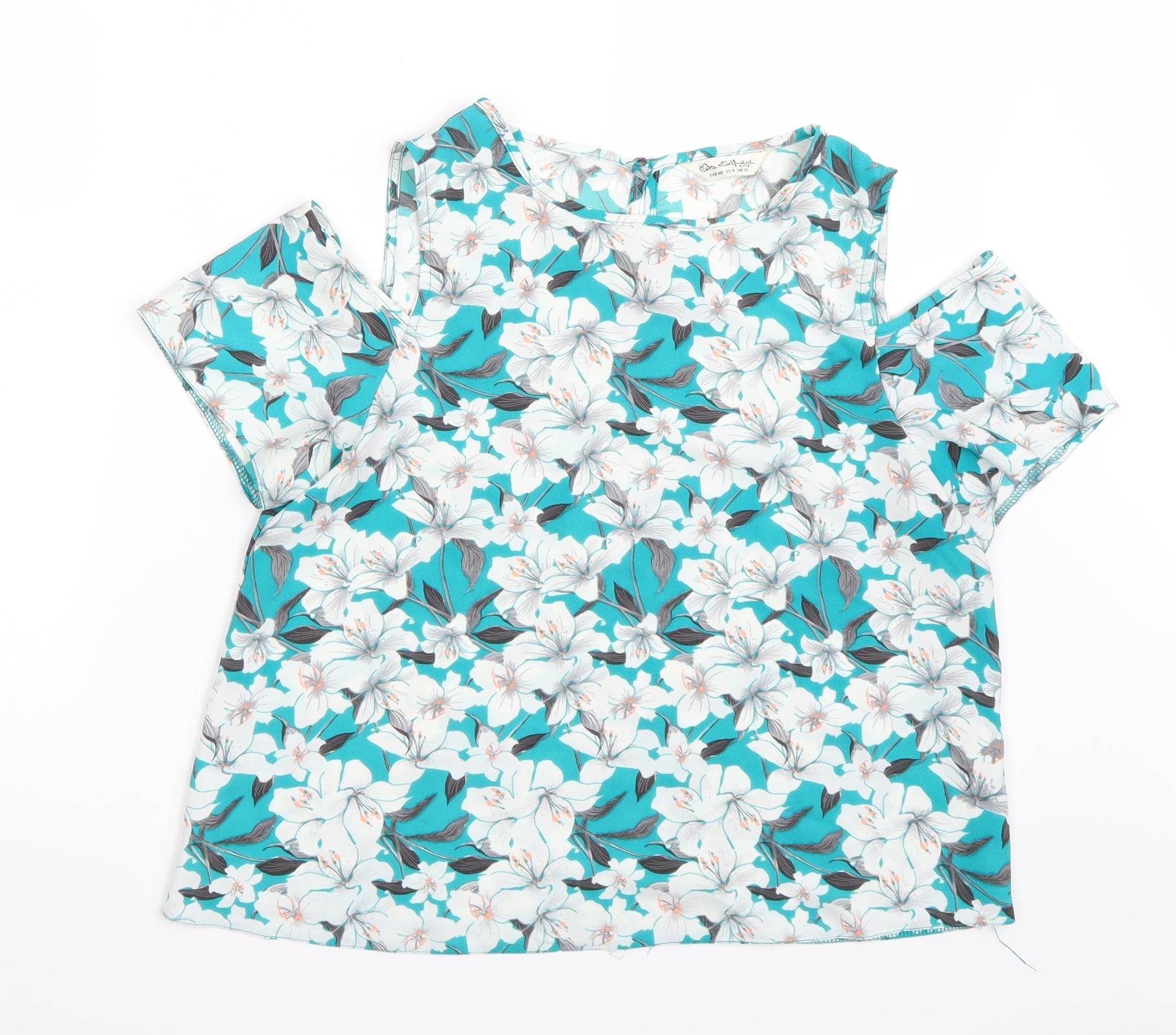 Miss Selfridge Womens Green Floral Basic T-Shirt Size 12