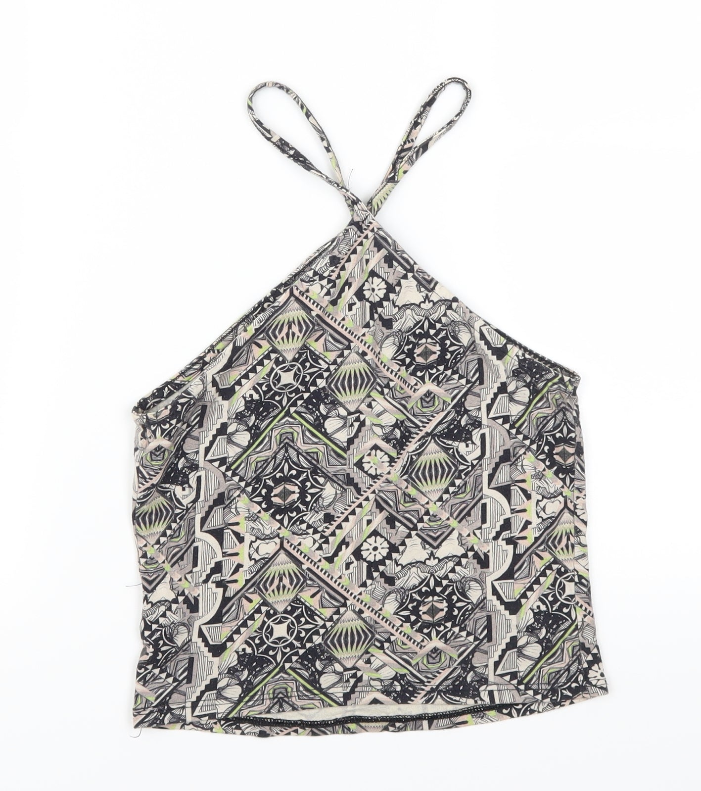 Miss Selfridge Womens Green Geometric Cropped Tank Size 6