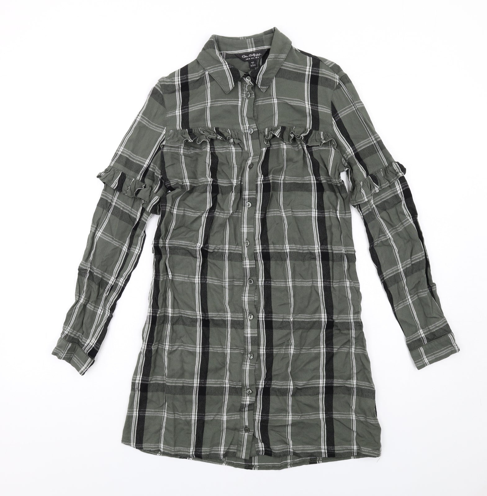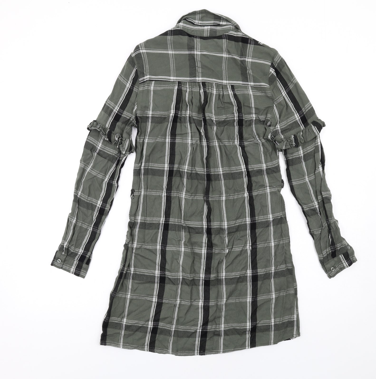 Miss Selfridge Womens Green Plaid Viscose Shirt Dress Size 8 Collared Button