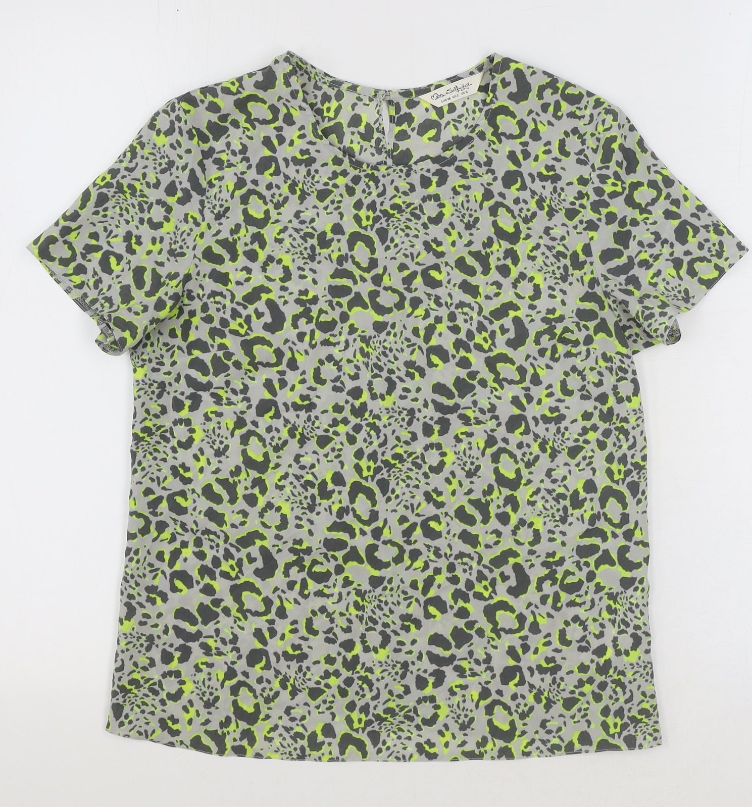 Miss Selfridge Womens Grey Animal Print Polyester Basic T-Shirt Size 6 Crew Neck
