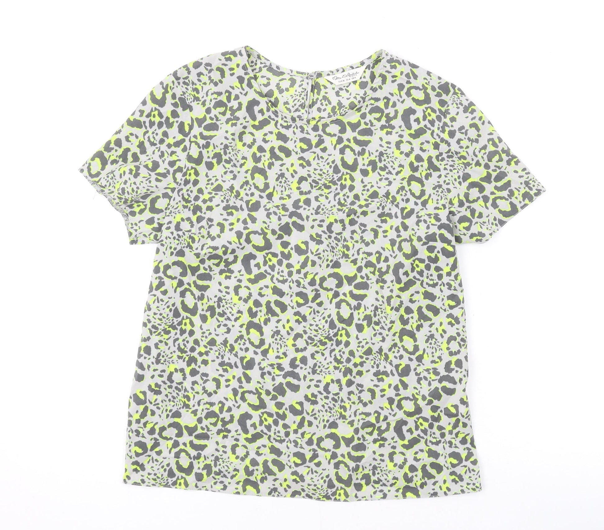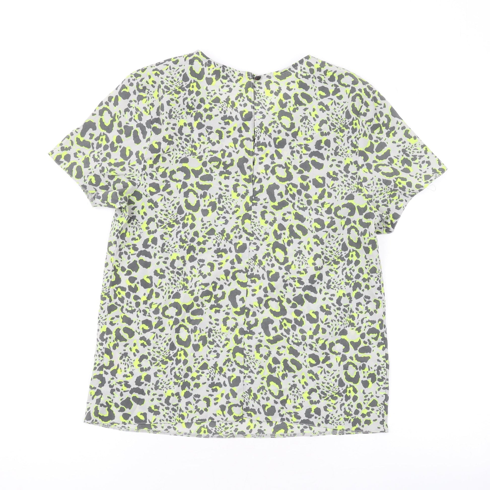 Miss Selfridge Womens Grey Animal Print Polyester Basic T-Shirt Size 8 Round Neck