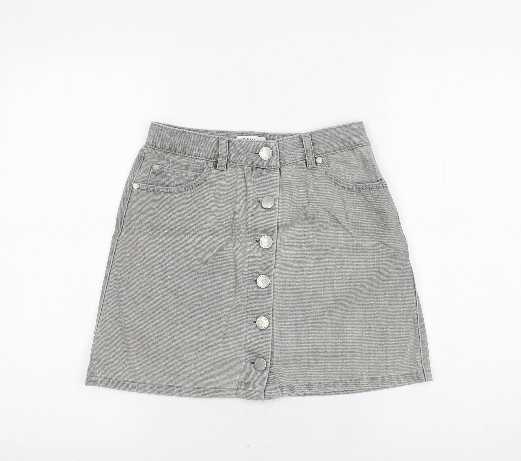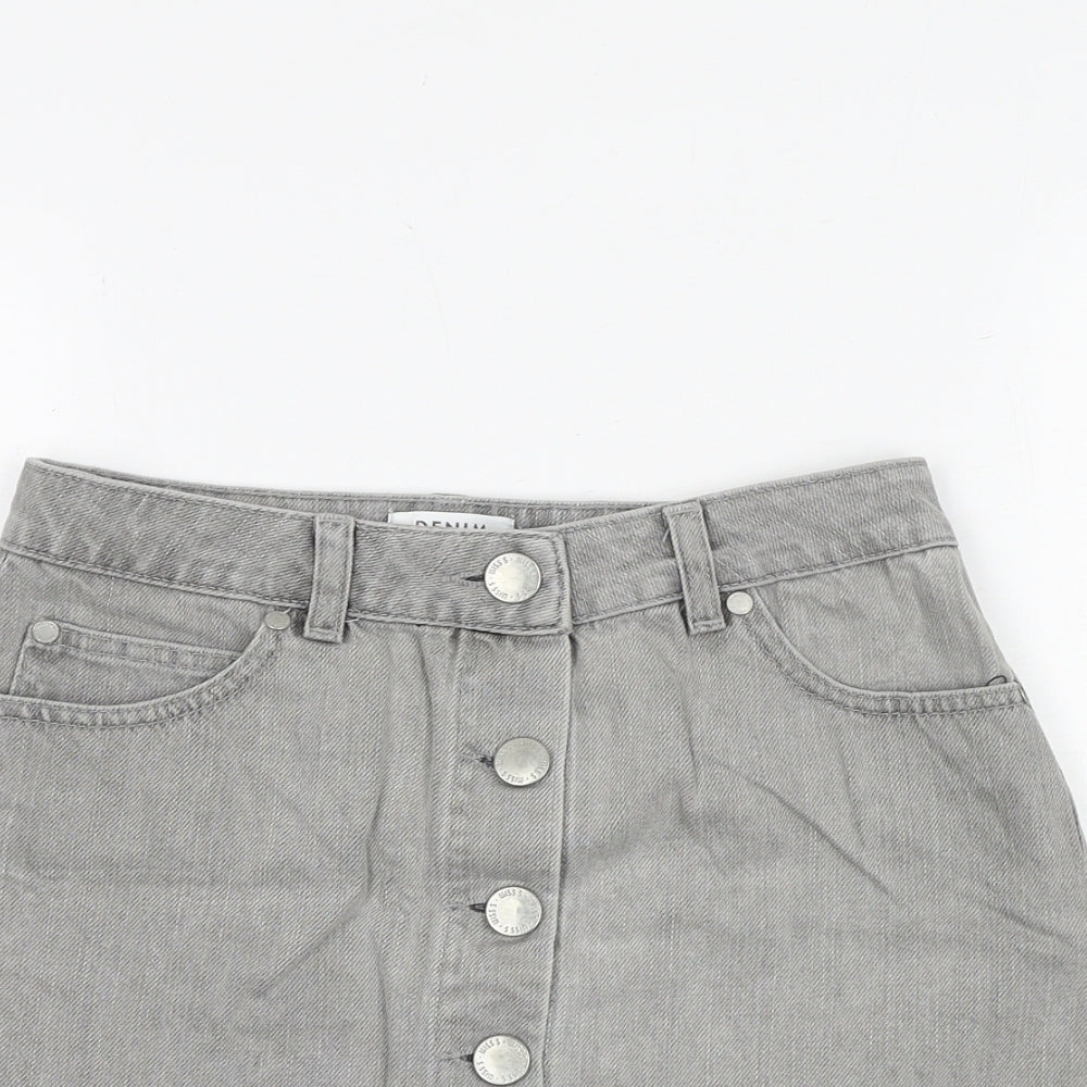 Miss Selfridge Womens Grey Cotton A-Line Skirt Size 6 Button