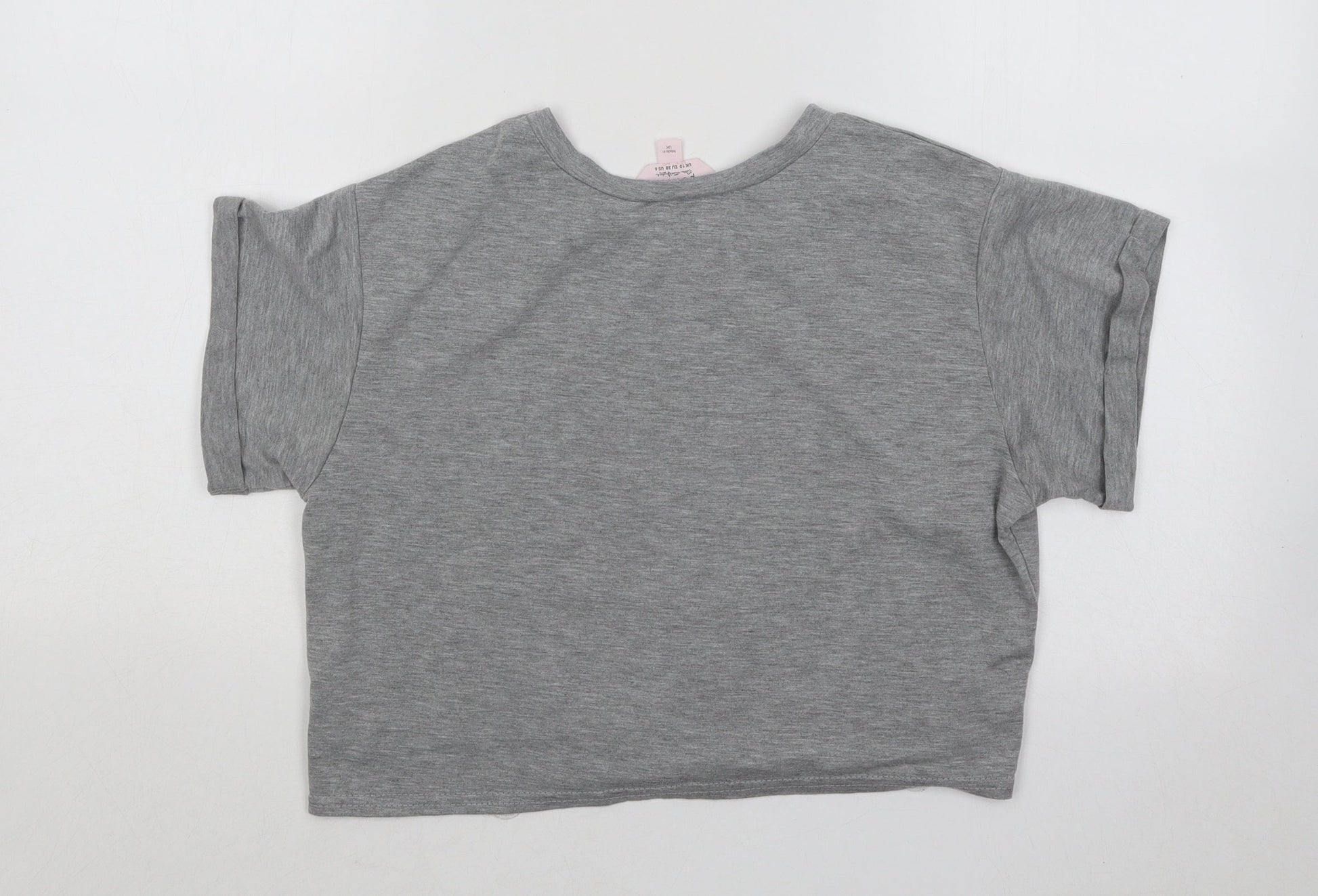 Miss Selfridge Womens Grey Geometric Cotton Basic T-Shirt Size 6 Round Neck - Lace Detail