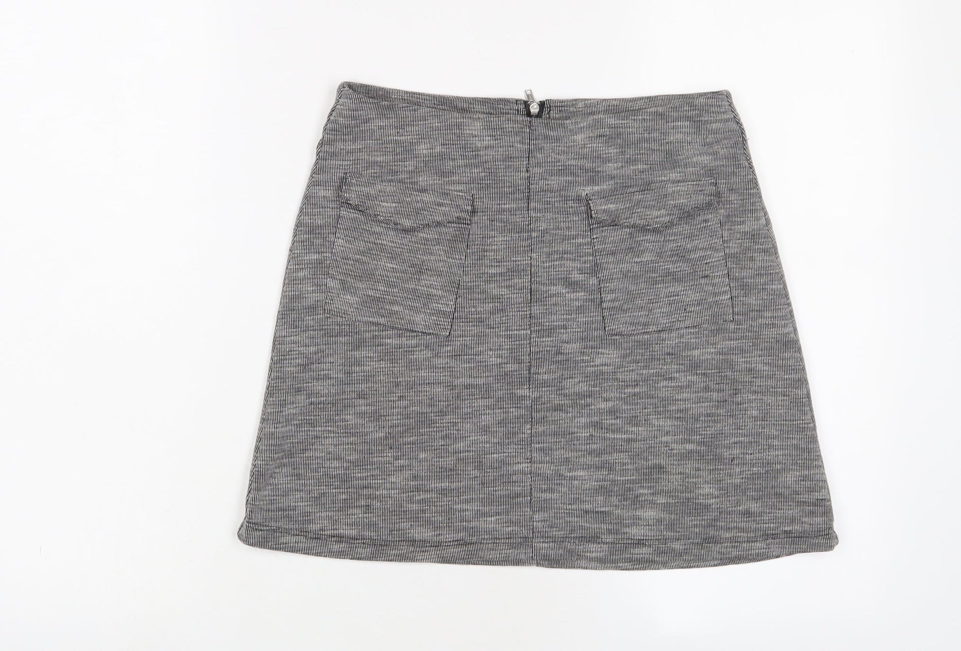 Miss Selfridge Womens Grey Polyester A-Line Skirt Size 10 Zip