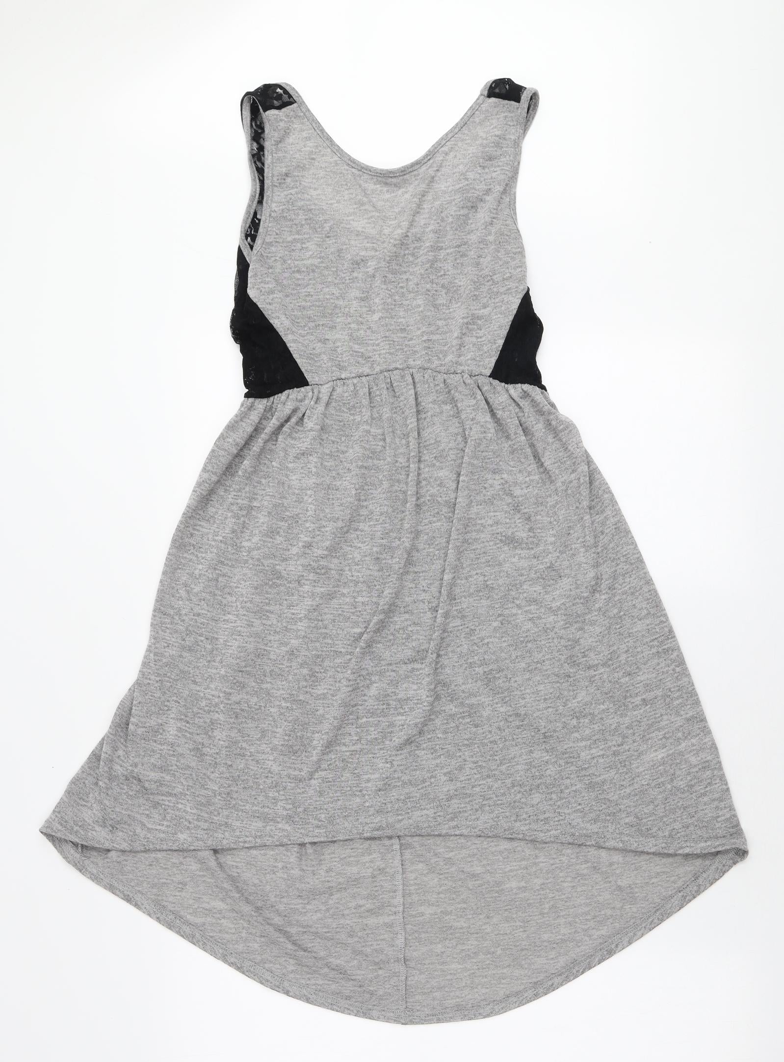 Miss Selfridge Womens Grey Polyester Mini Size 6 Round Neck Pullover - Lace Back