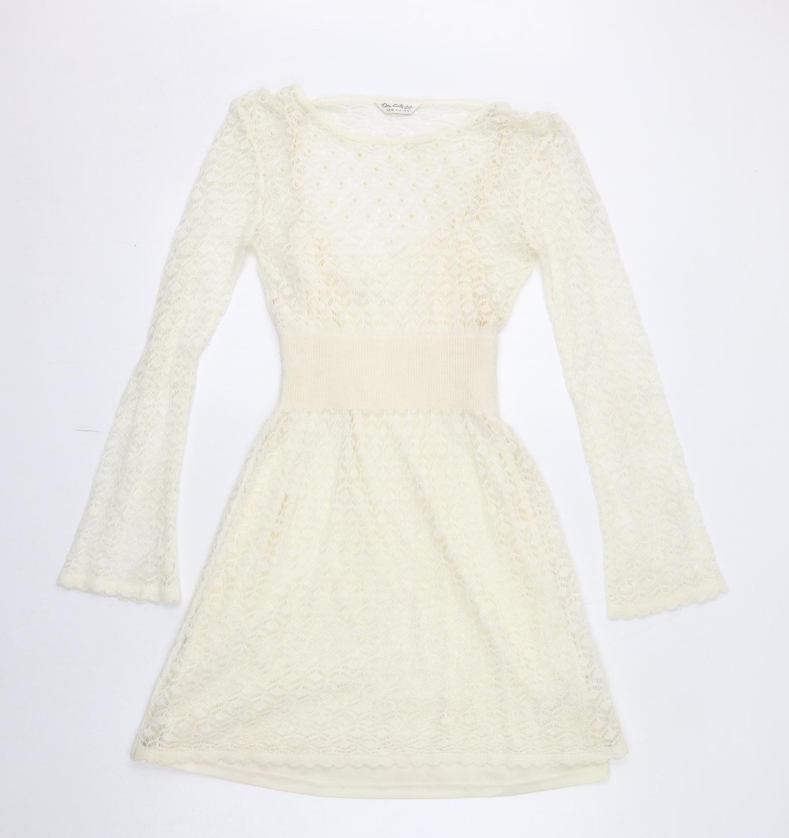 Miss Selfridge Womens Ivory Acrylic Fit & Flare Size 10 Boat Neck Pullover