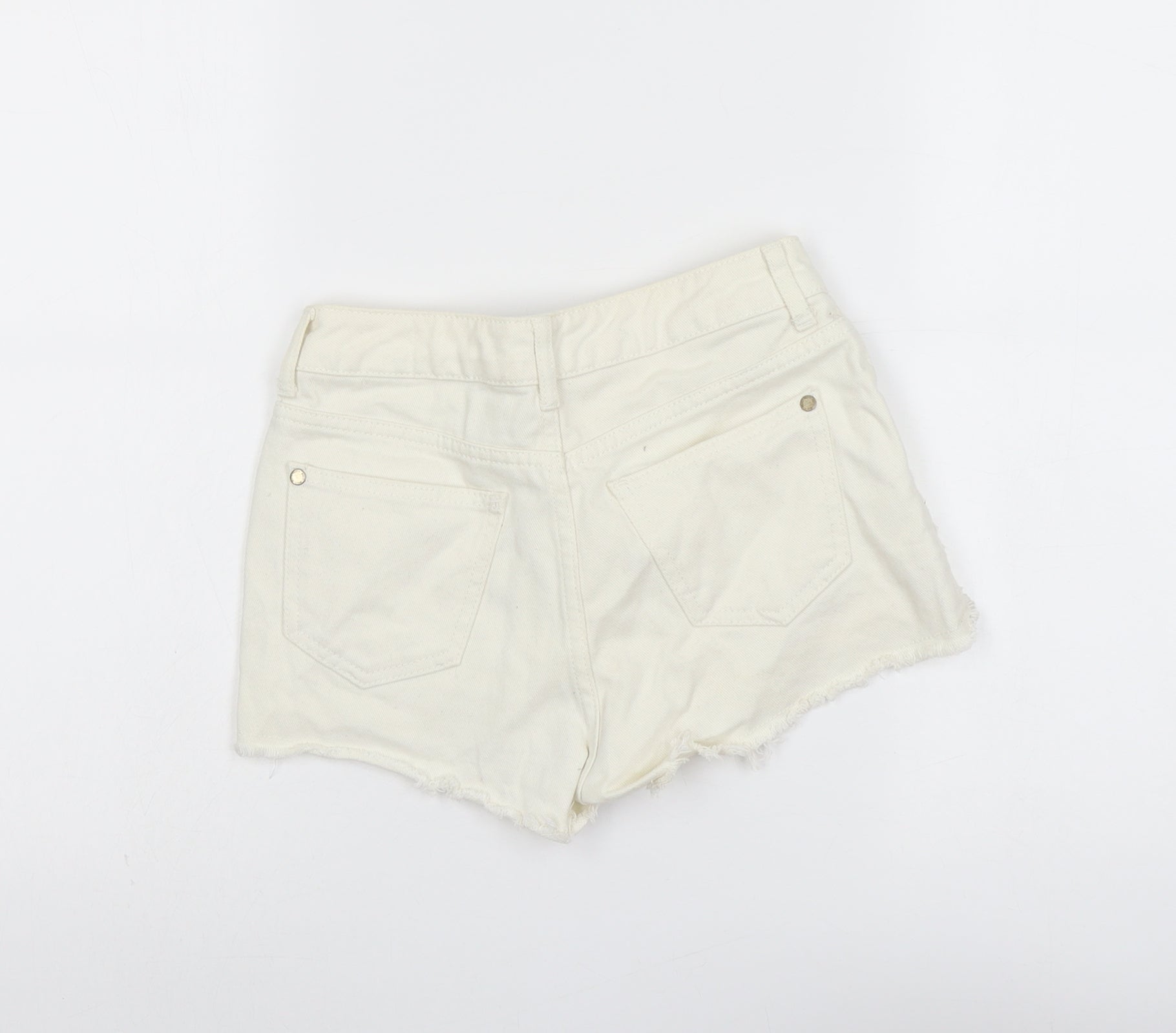Miss Selfridge Womens Ivory Cotton Cut-Off Shorts Size 8 L3 in Regular Button