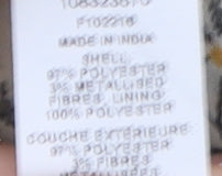 - Material Breakdown: 97% Polyester 3% Metallic Fibres