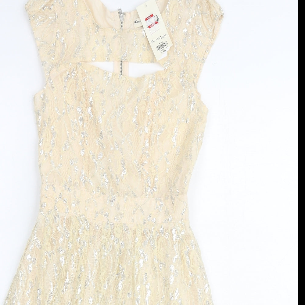 Miss Selfridge Womens Ivory Geometric Polyamide A-Line Size 4 Round Neck Zip - Keyhole Neck