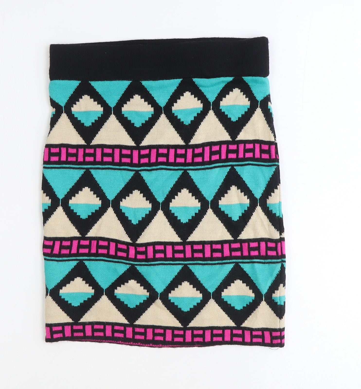 Miss Selfridge Womens Multicoloured Geometric Acrylic Bandage Skirt Size 8