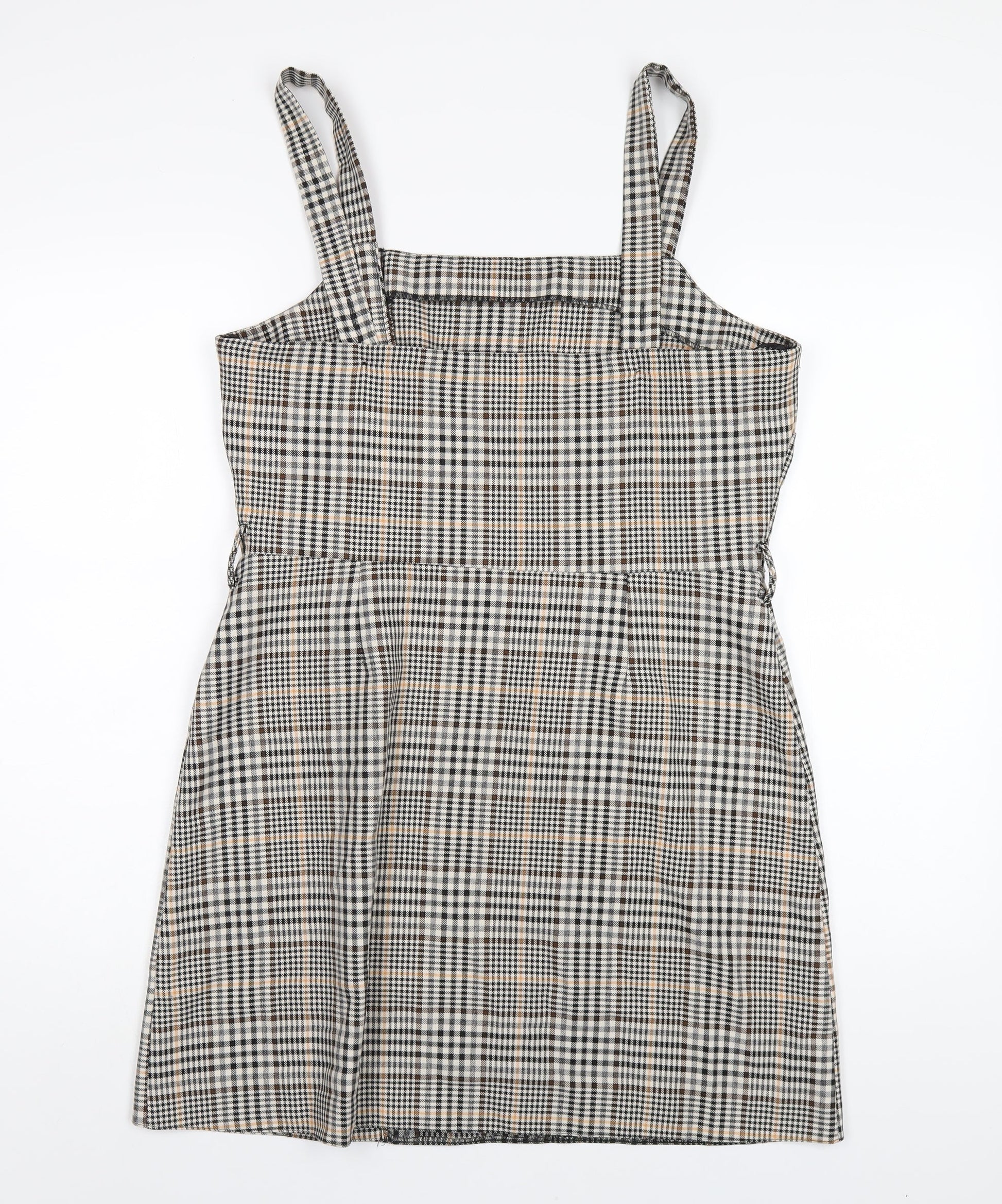 Miss Selfridge Womens Multicoloured Plaid Polyester A-Line Size 14 Square Neck Zip