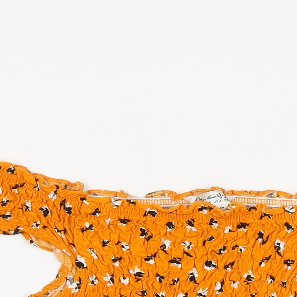 Miss Selfridge Womens Orange Geometric Polyester Cropped Blouse Size 6 Off the Shoulder