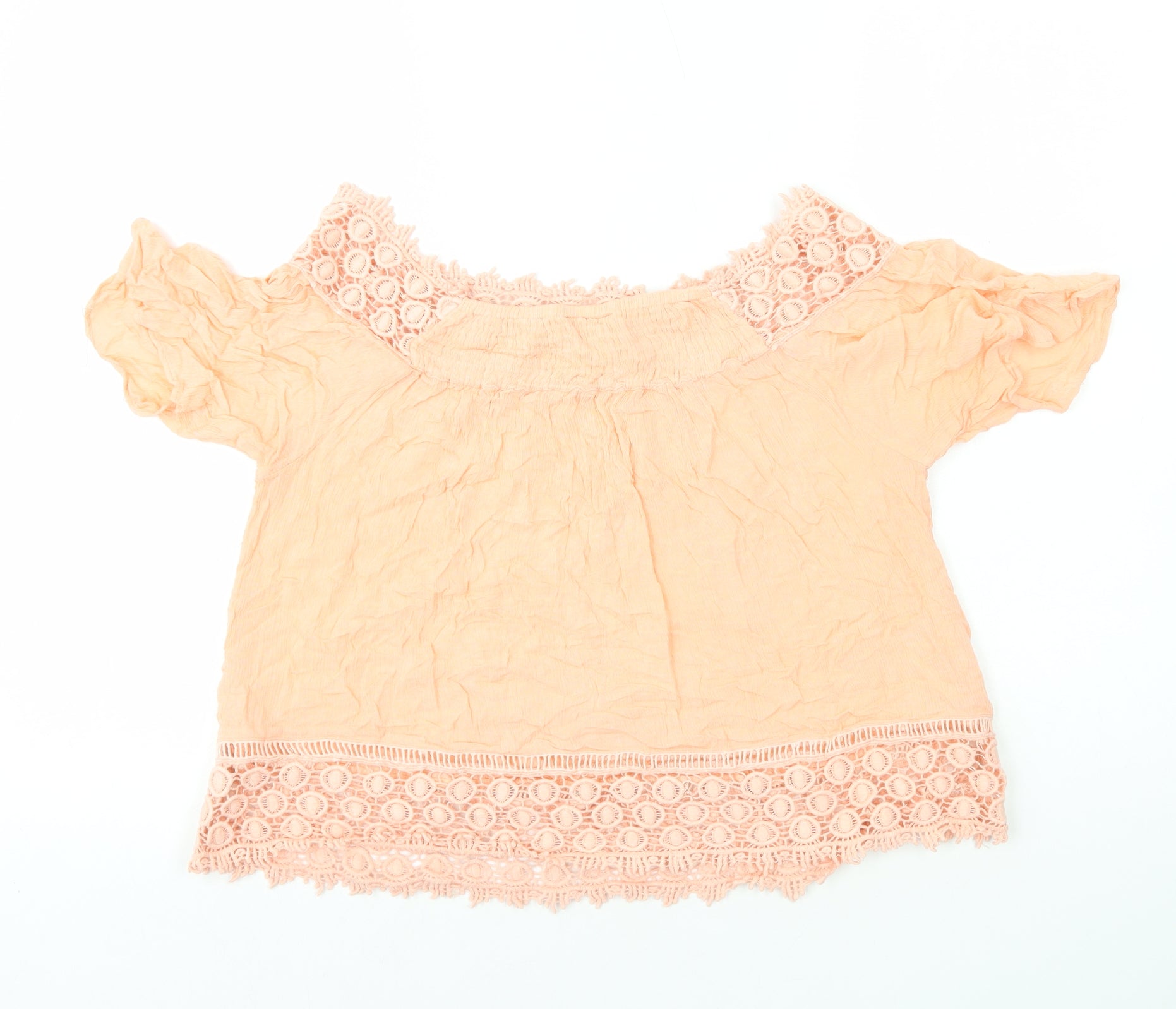 Miss Selfridge Womens Orange Polyester Basic T-Shirt Size 12 Off the Shoulder - Crochet Detail on Sleeve and Hem