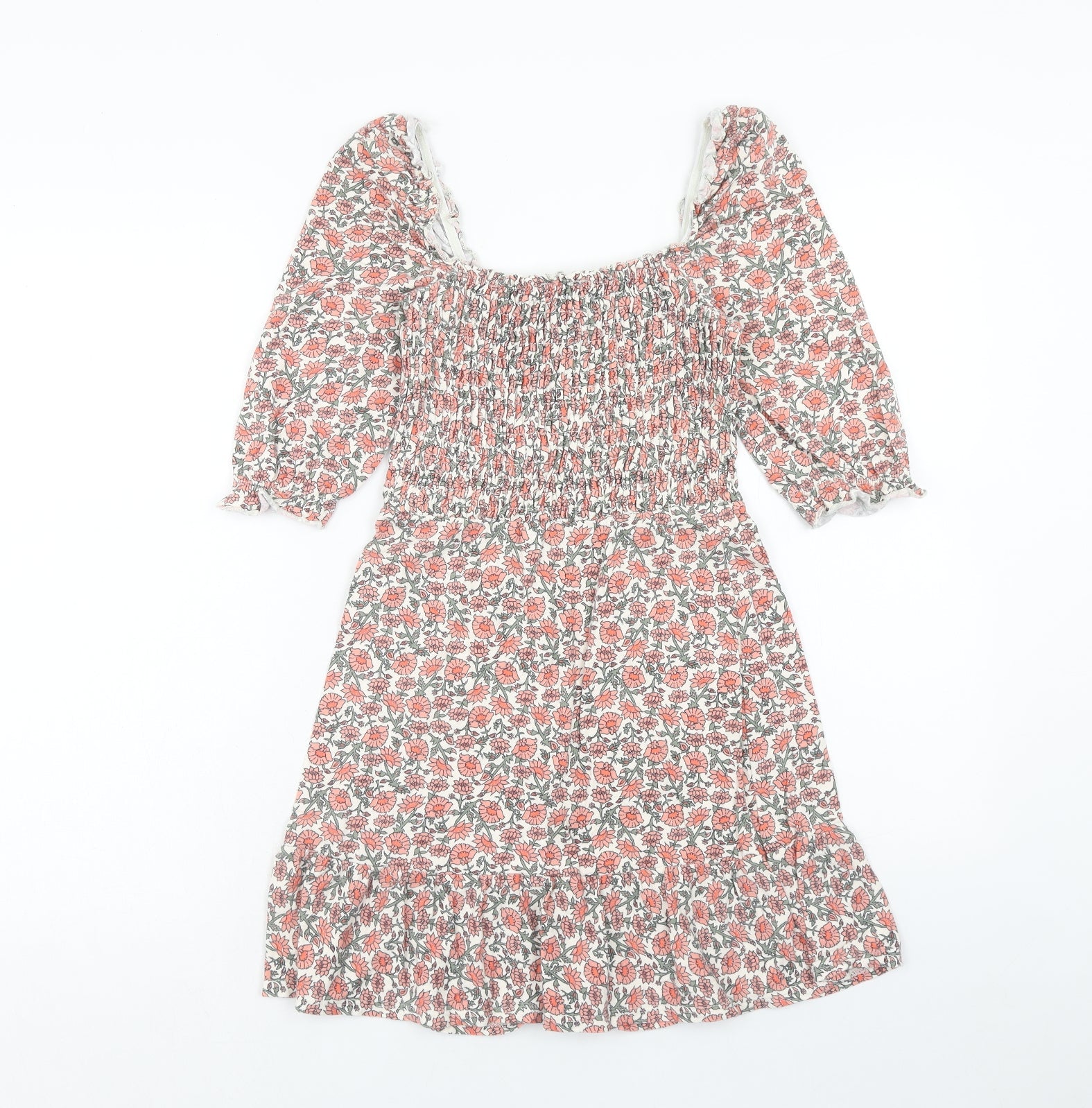 Miss Selfridge Womens Pink Floral Cotton Fit & Flare Size 8 Off the Shoulder Pullover