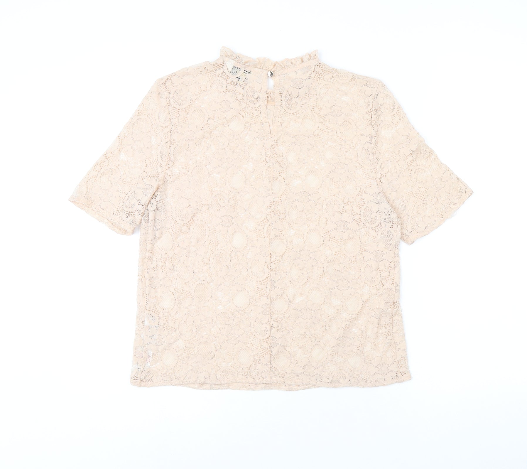 Miss Selfridge Womens Pink Floral Nylon Basic T-Shirt Size 10 Round Neck