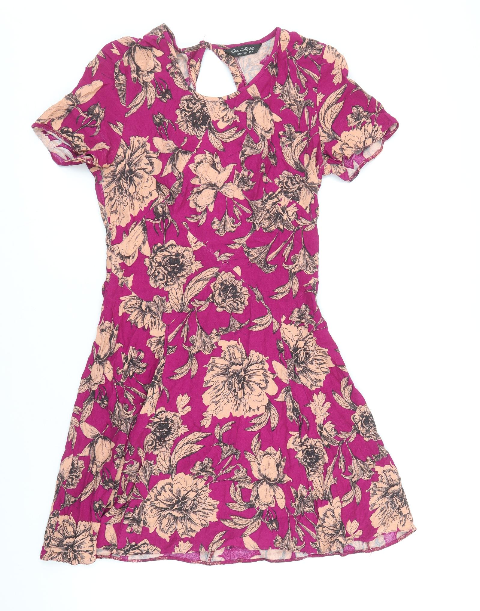 Miss Selfridge Womens Pink Floral Viscose A-Line Size 8 Scoop Neck Button - Cut Out Back Detail