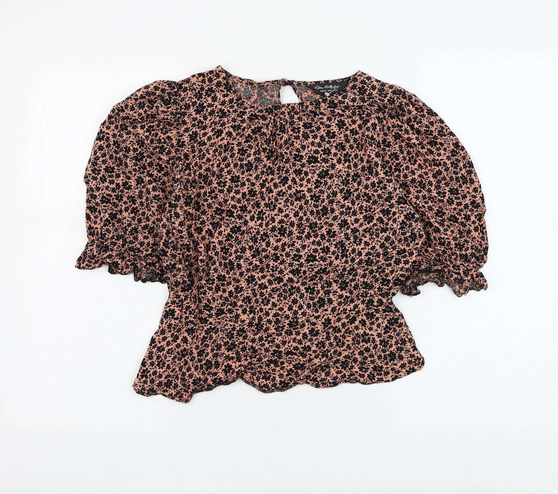 Miss Selfridge Womens Pink Floral Viscose Basic Blouse Size 14 Round Neck