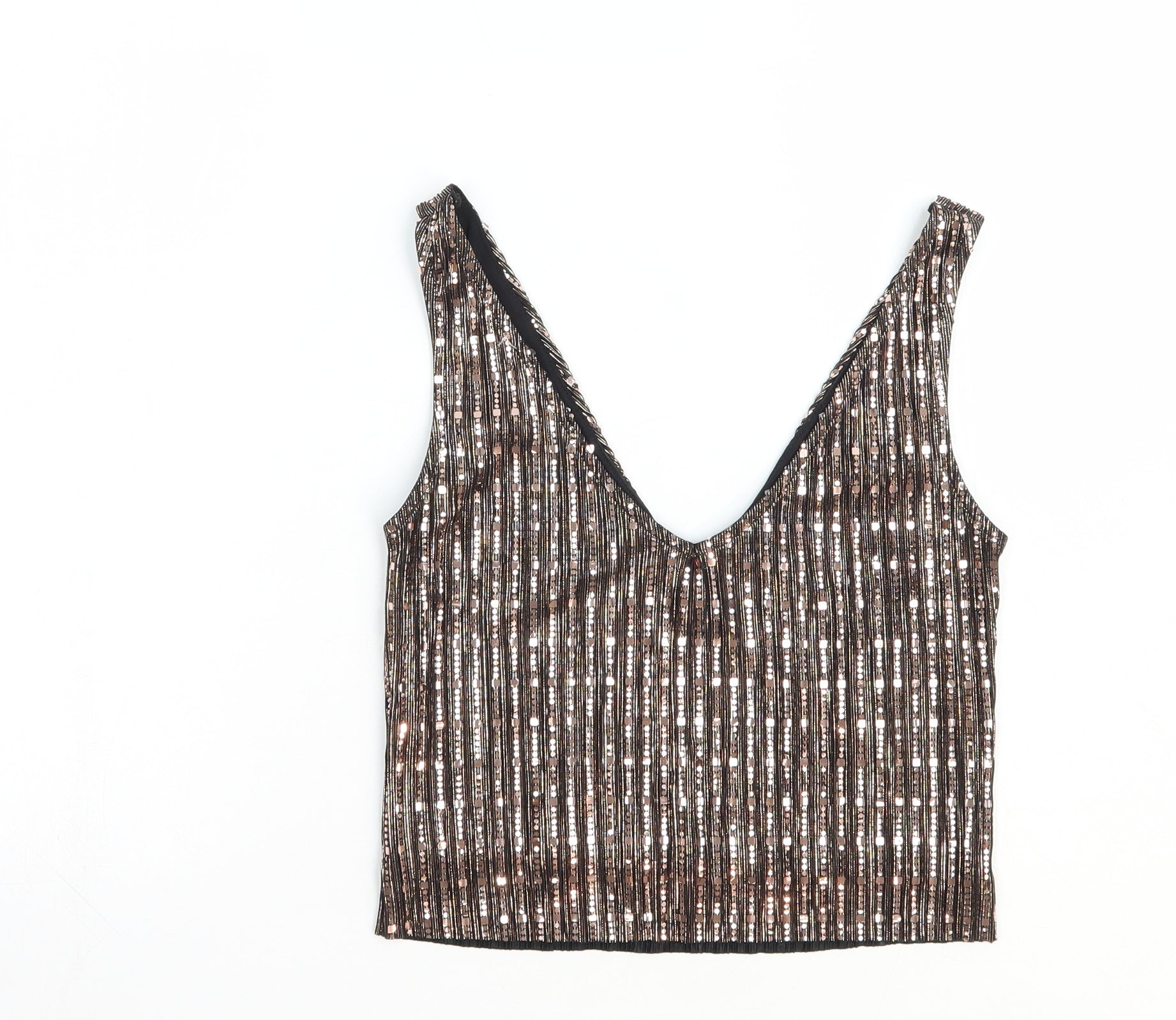 Miss Selfridge Womens Pink Geometric Polyester Basic Tank Size 4 V-Neck