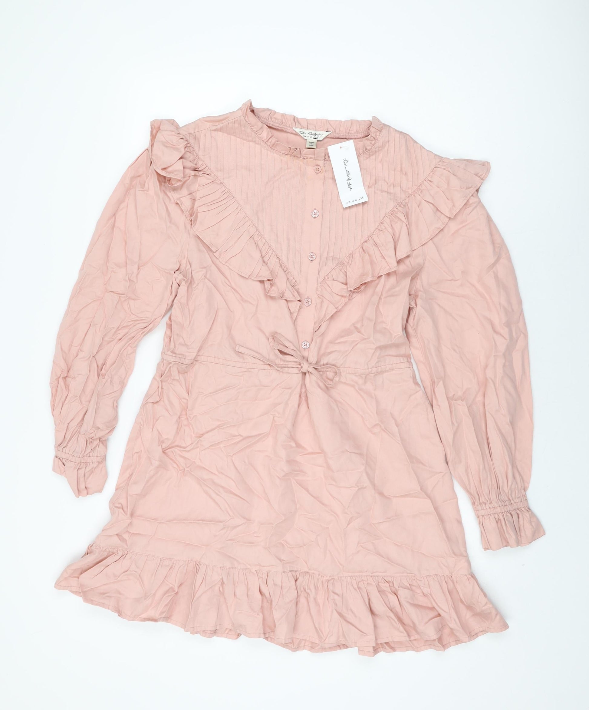 Miss Selfridge Womens Pink Lyocell Shift Size 14 Round Neck Button