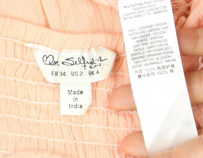 Miss Selfridge Womens Pink Off Shoulder Crochet Cotton Blouse Size 8