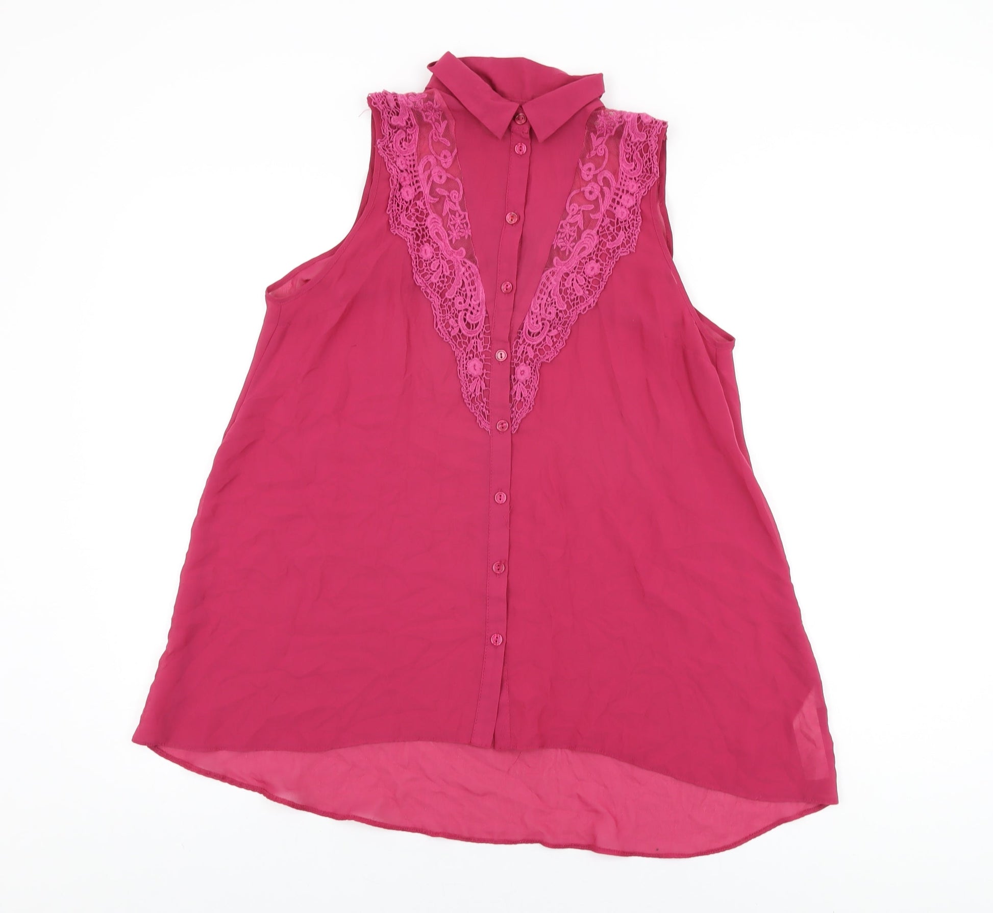 Miss Selfridge Womens Pink Polyester Basic Button-Up Size 10 Collared