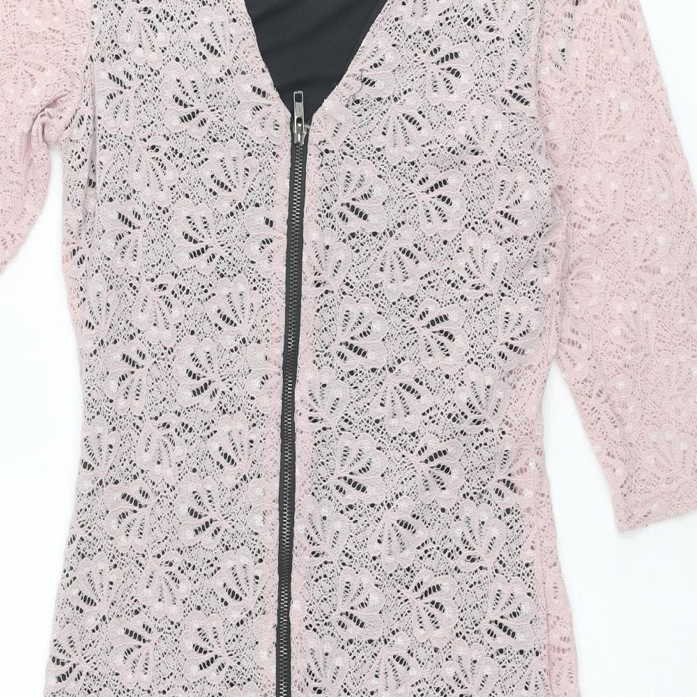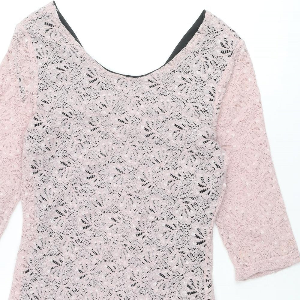 Miss Selfridge Womens Pink Polyester Pencil Dress Size 10 Boat Neck Zip