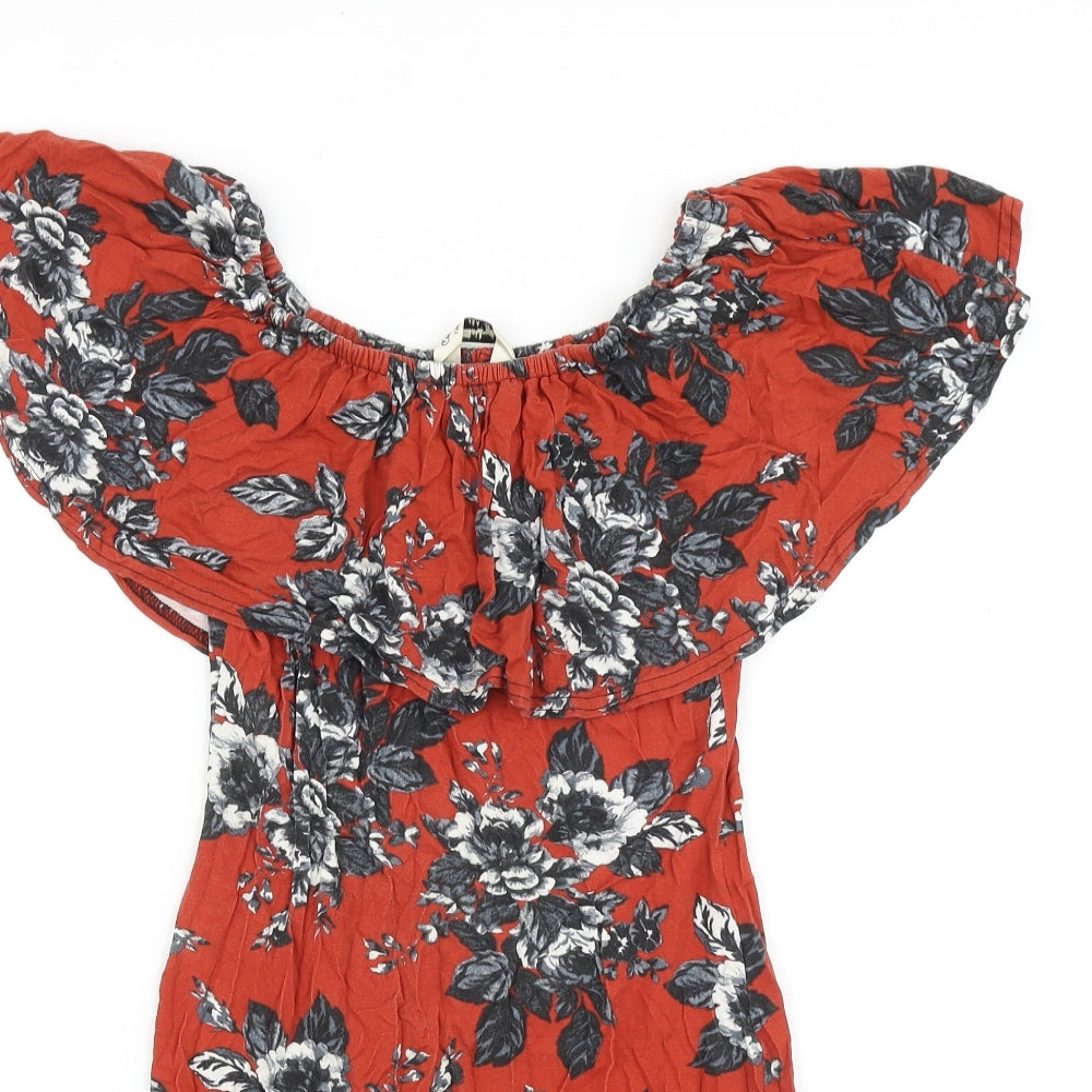 Miss Selfridge Womens Red Floral Cotton Mini Size 8 Off the Shoulder Pullover