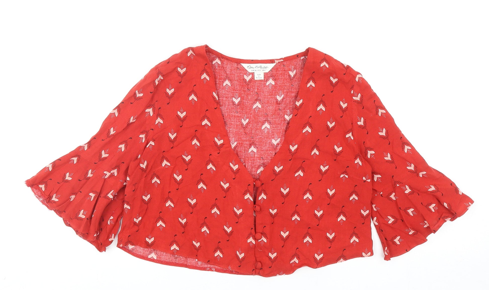 Miss Selfridge Womens Red Geometric Viscose Cropped Button-Up Size 6 V-Neck