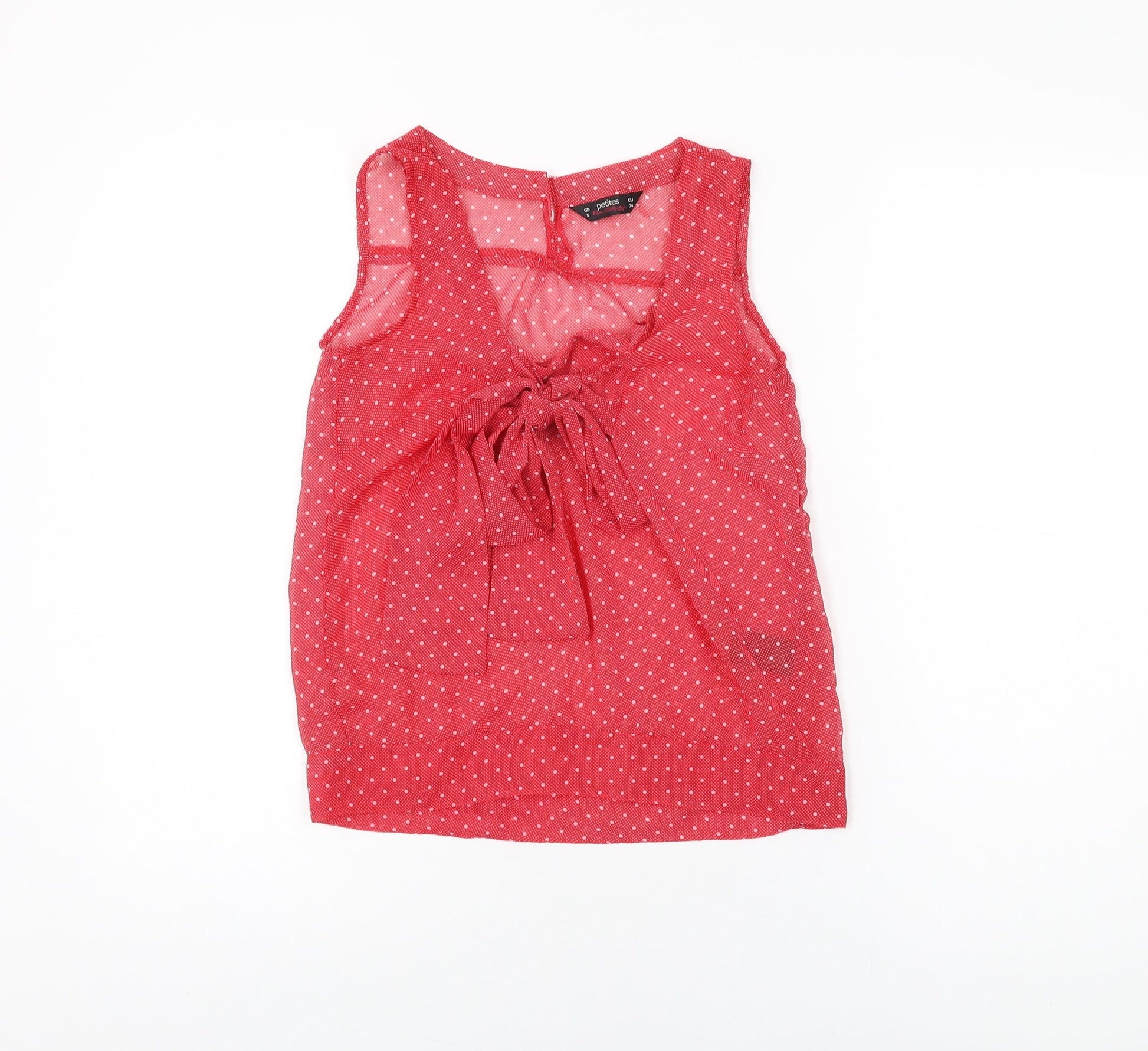 Miss Selfridge Womens Red Polka Dot Polyester Basic Blouse Size 6 Square Neck