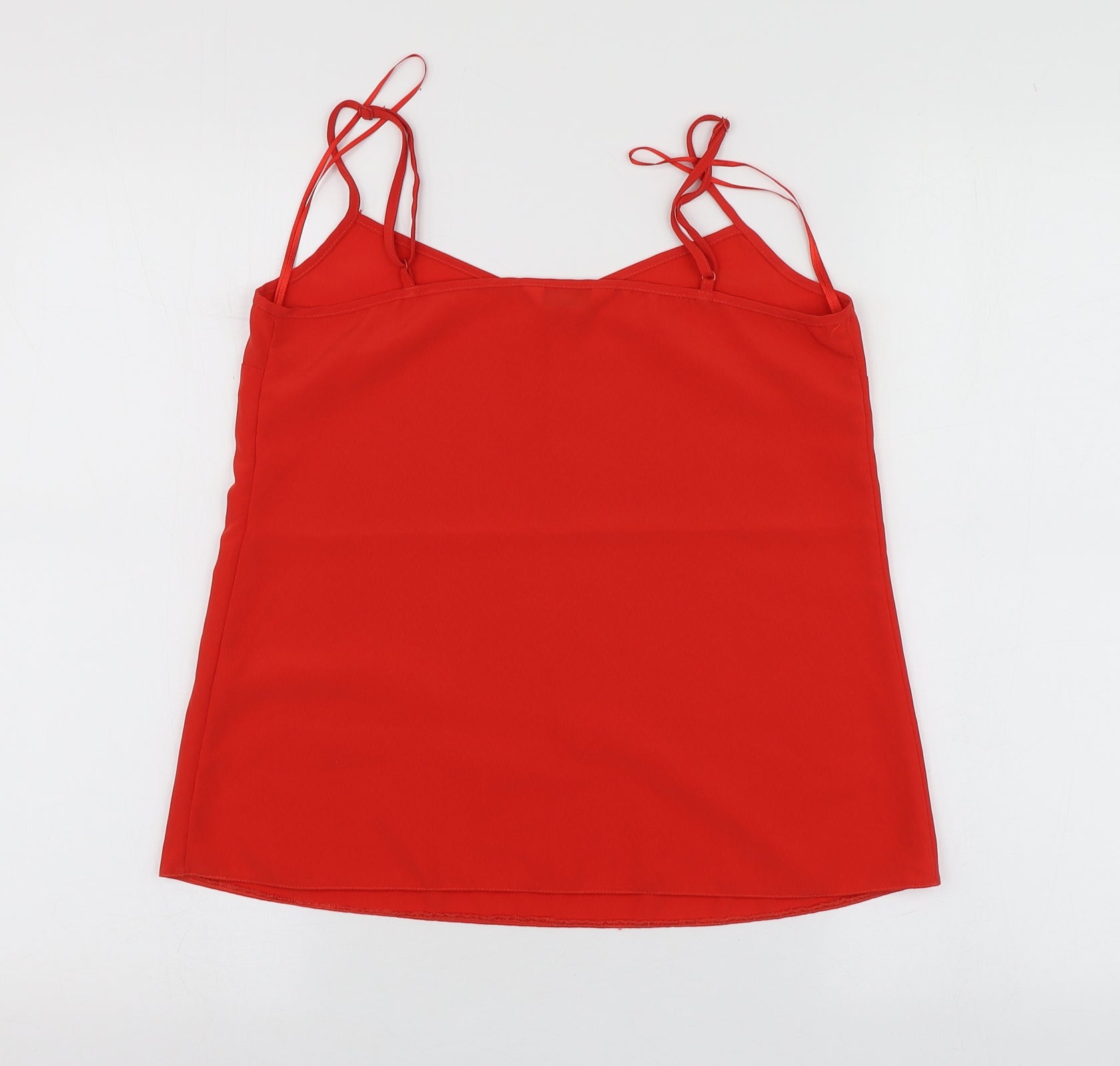 Miss Selfridge Womens Red Polyester Basic T-Shirt Size 6 V-Neck