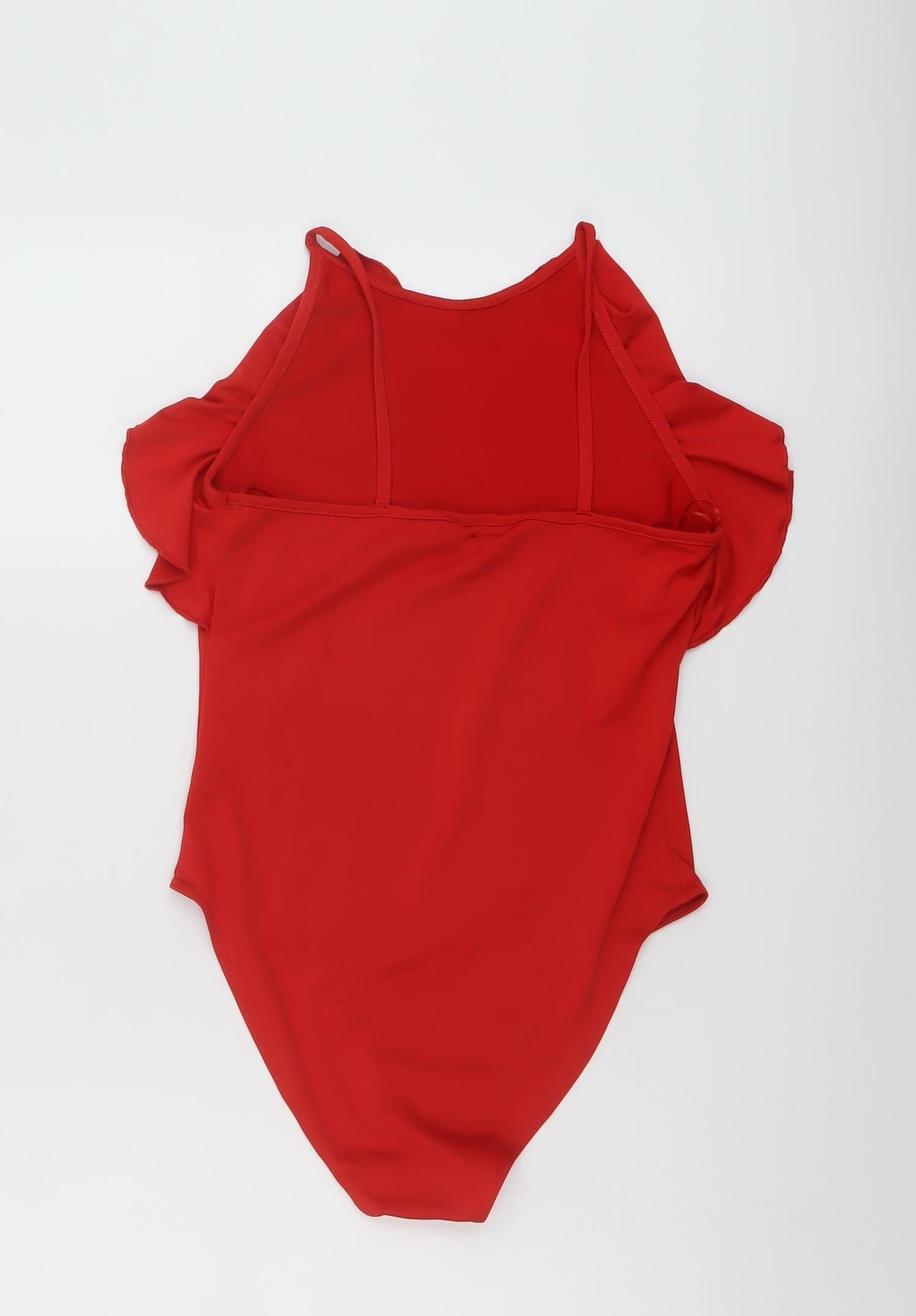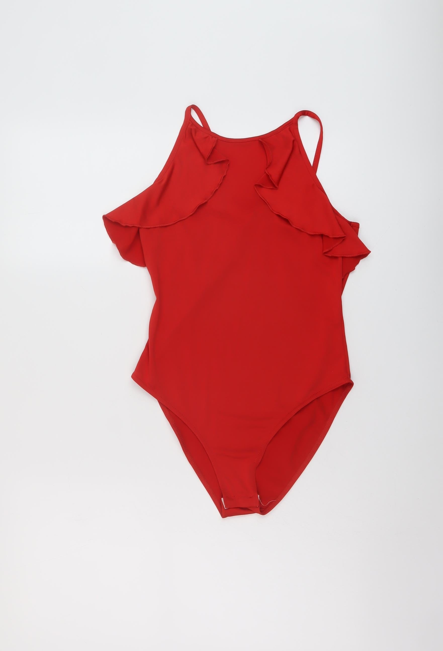 Miss Selfridge Womens Red Polyester Bodysuit One-Piece Size 10 Snap