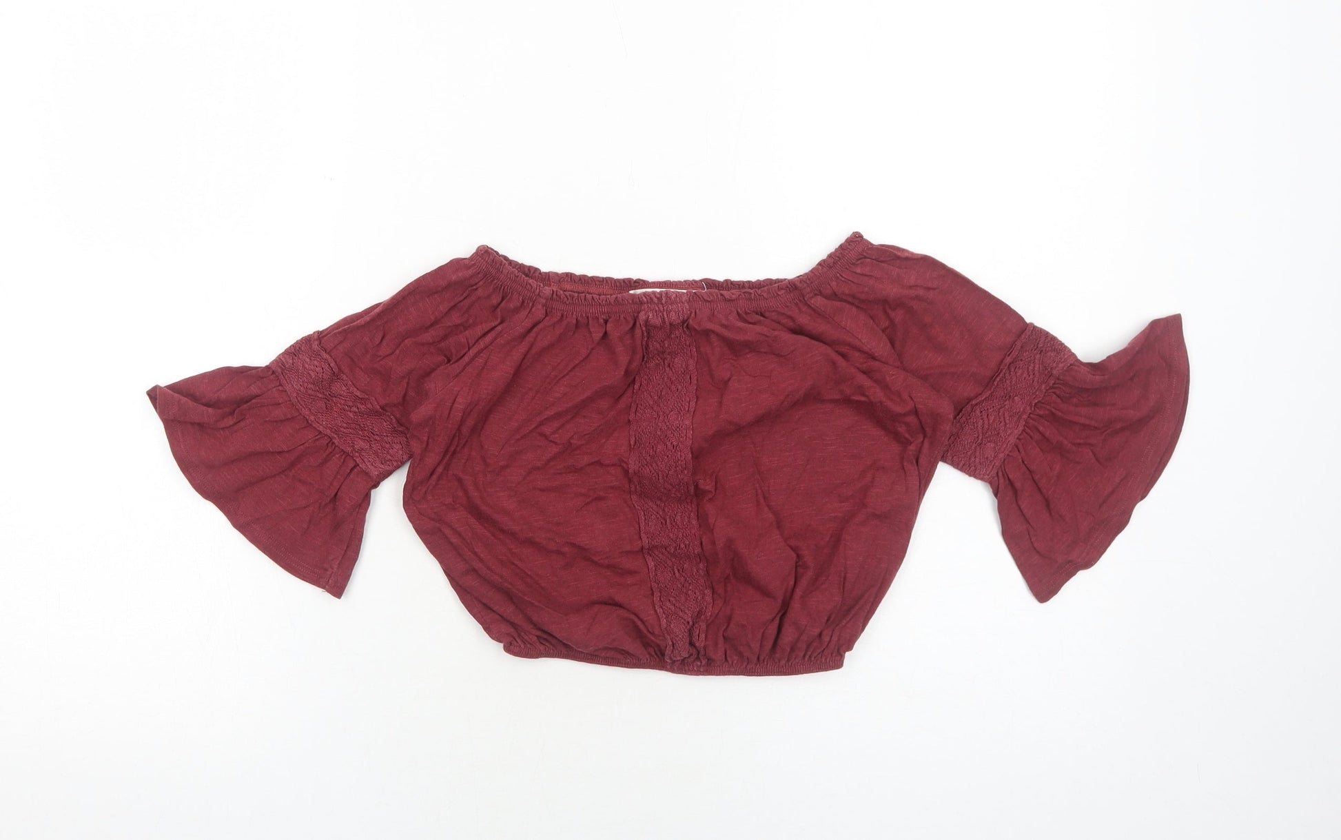 Miss Selfridge Womens Red Viscose Cropped Blouse Size 6 Boat Neck