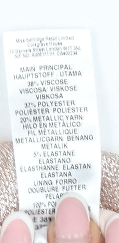 - Material Breakdown: 38% Viscose 37% Polyester 20% Metallic Yarn 5% Elastane