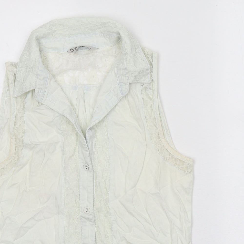 Miss Selfridge Womens White 100% Cotton Basic Tank Size 10 V-Neck - Lace Detail