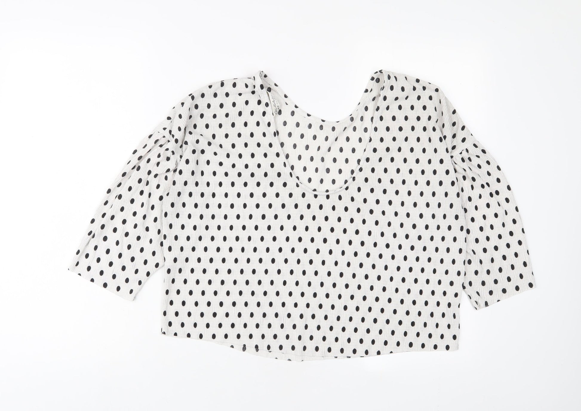 Miss Selfridge Womens White Polka Dot Polyester Basic T-Shirt Size 10 Crew Neck