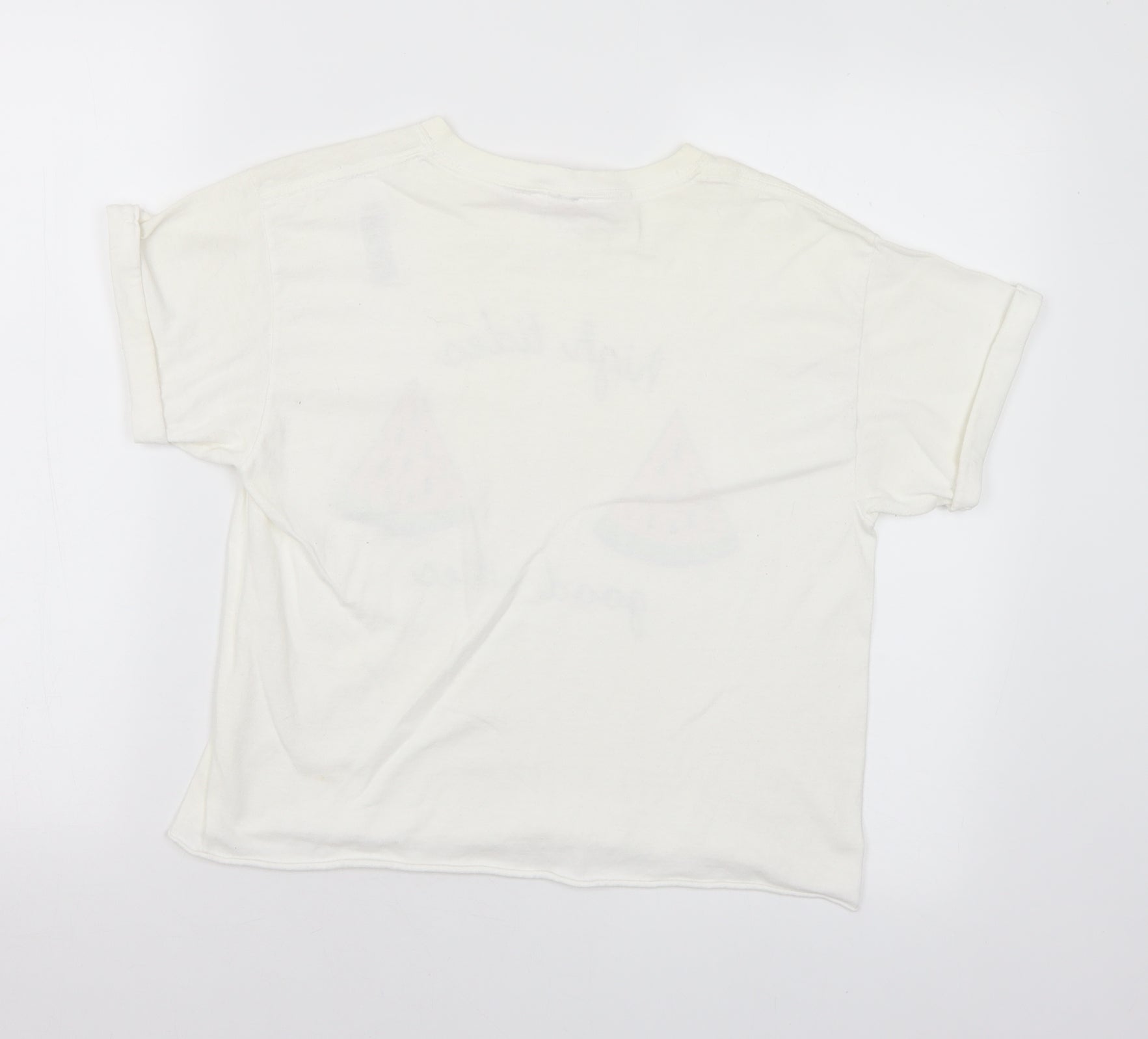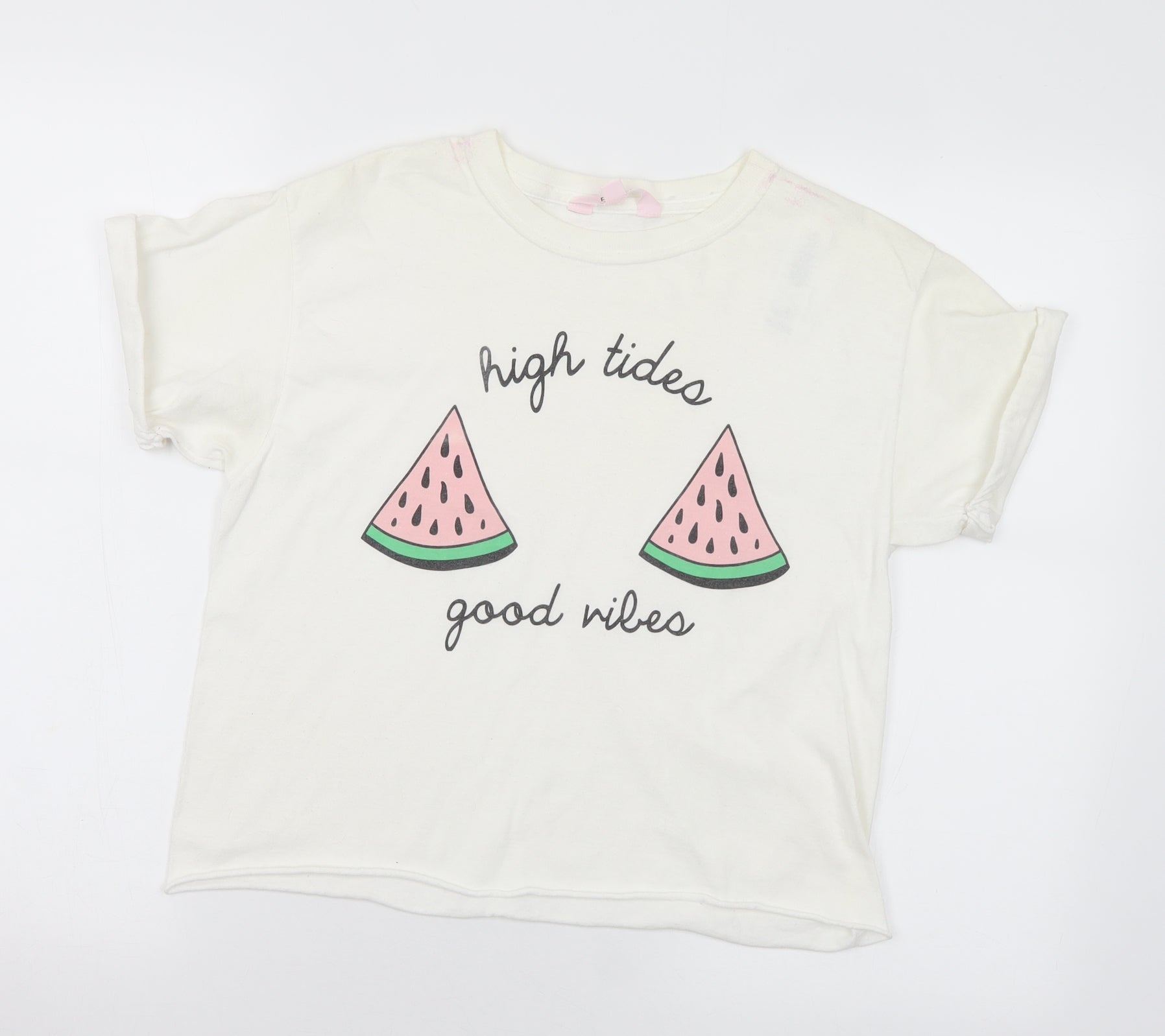 Miss Selfridge Womens White Polyester Basic T-Shirt Size M Crew Neck - High tides, good vibes