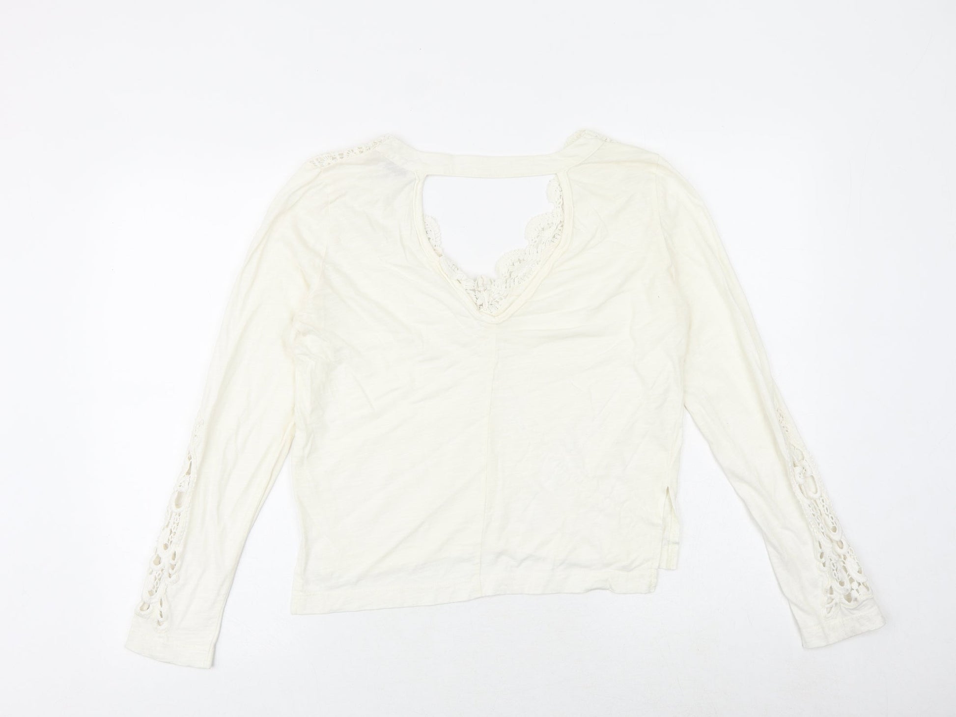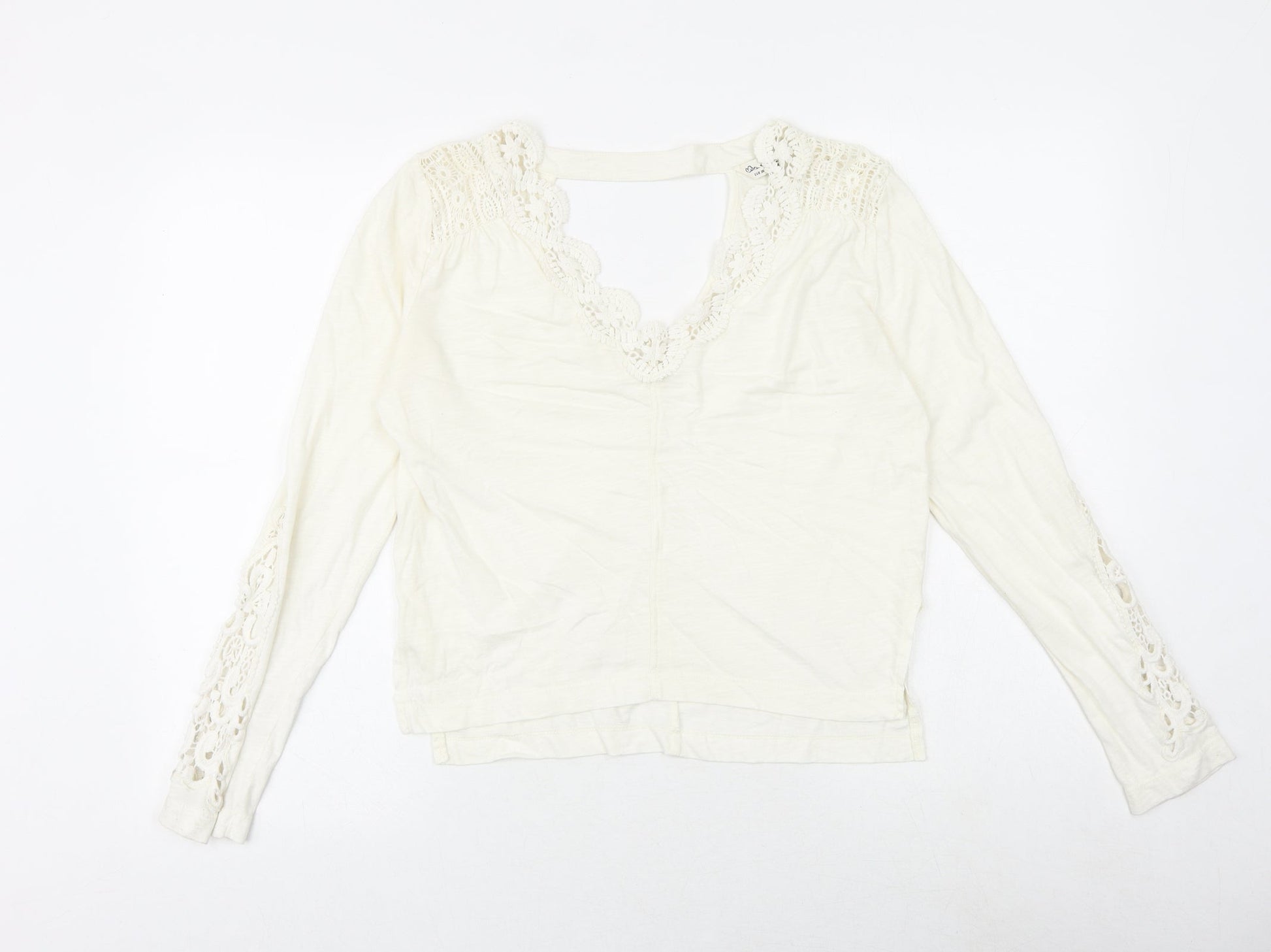 Miss Selfridge Womens White Polyester Basic Tank Size 10 V-Neck - Lace Details, Open Back