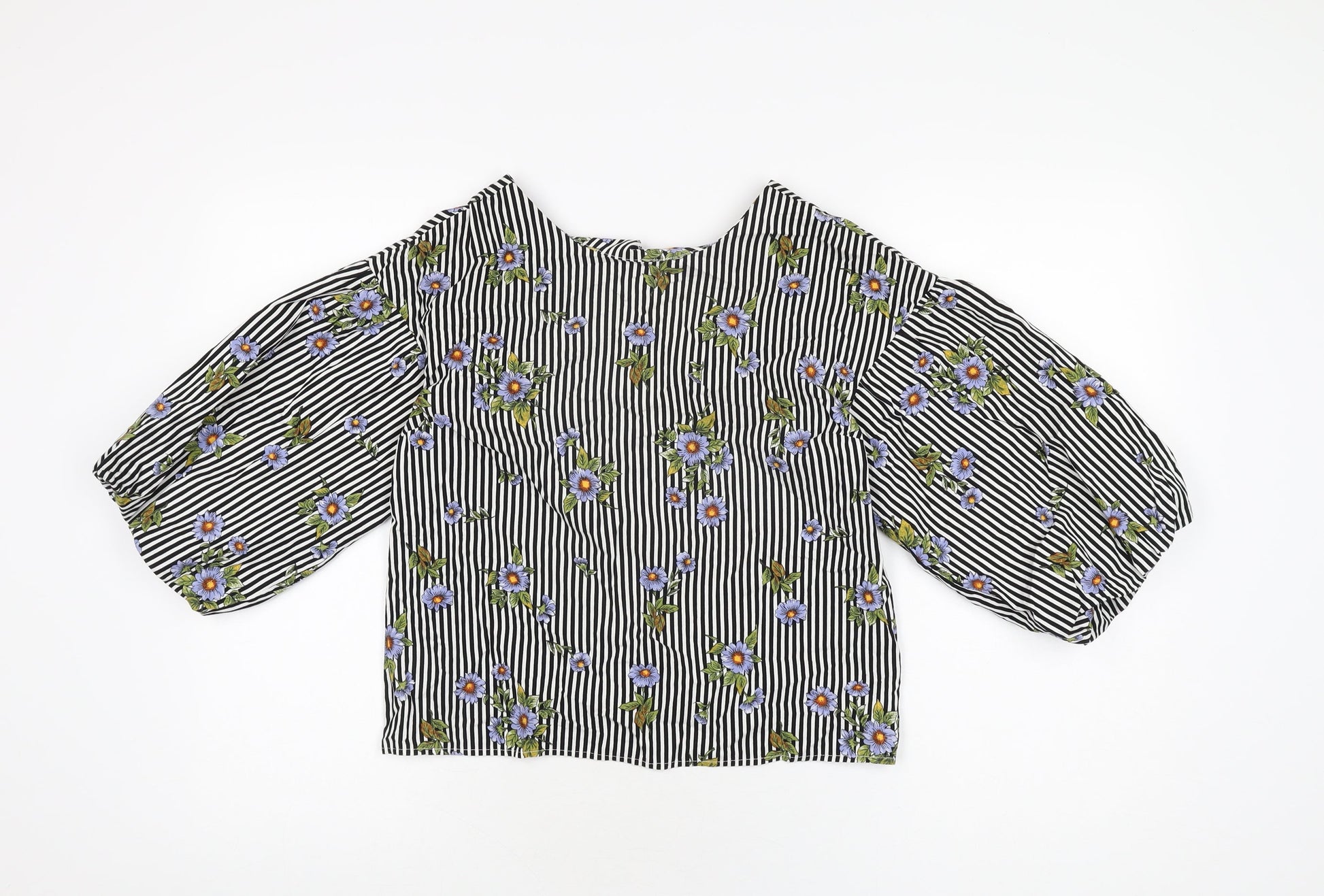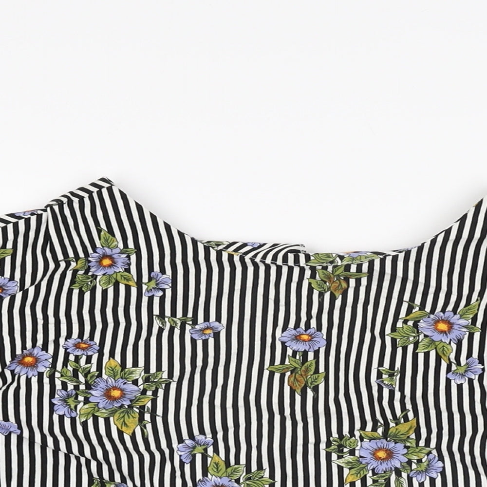 Miss Selfridge Womens White Striped Cotton Basic T-Shirt Size 6 Round Neck - Floral Print